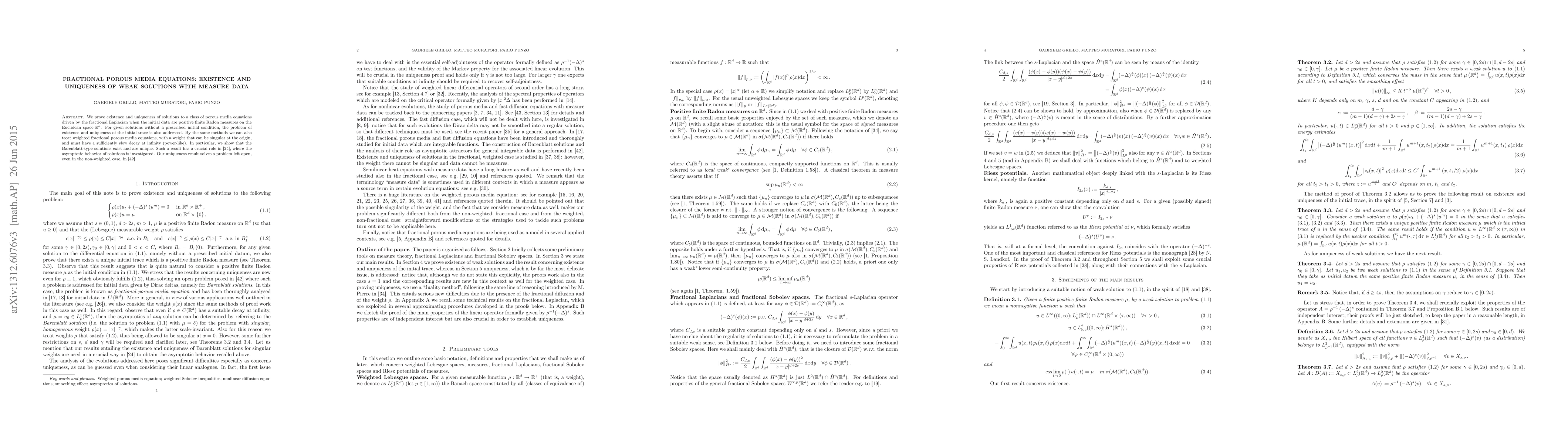 This paper proves the existence and uniqueness of weak solutions to fractional porous media equations driven by the fractional Laplacian, with initial data as positive finite Radon measures. It also addresses the existence and uniqueness of initial traces for solutions without a prescribed initial condition, and extends the results to weighted fractional porous media equations with specific weight conditions.