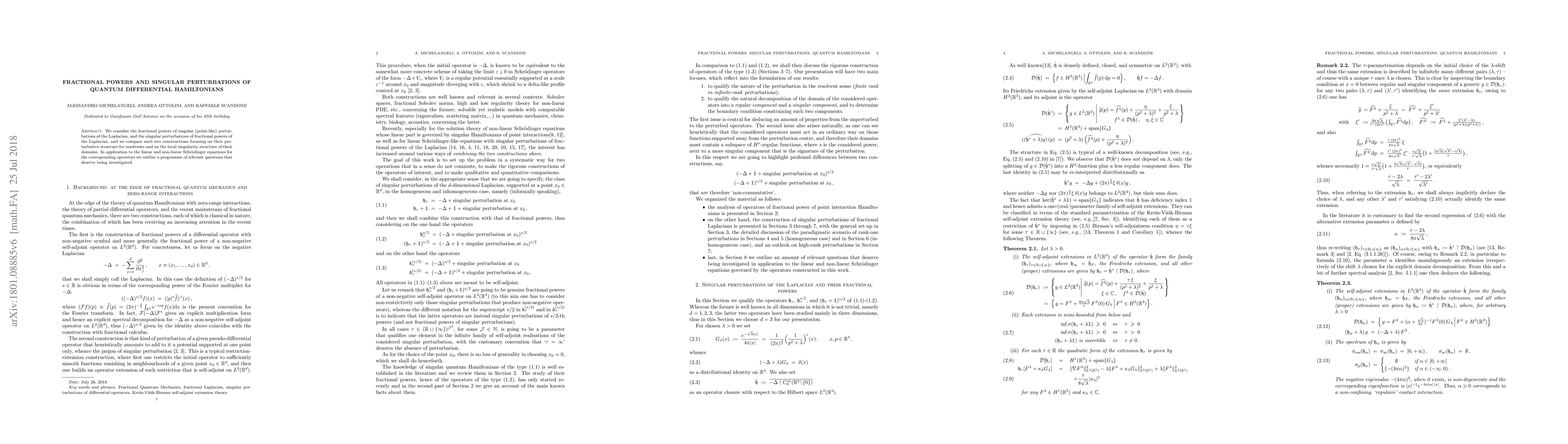 This paper explores two constructions of quantum differential Hamiltonians with fractional powers and singular perturbations, comparing their resolvent properties and domain singularity structures.