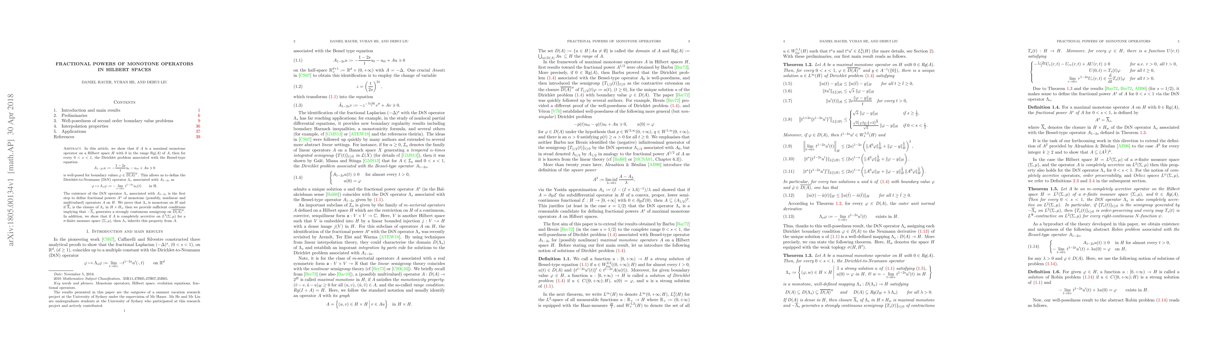A research paper shows that fractional powers of monotone operators on Hilbert spaces have well-posed Dirichlet problems, allowing for the definition of a related operator with certain properties.