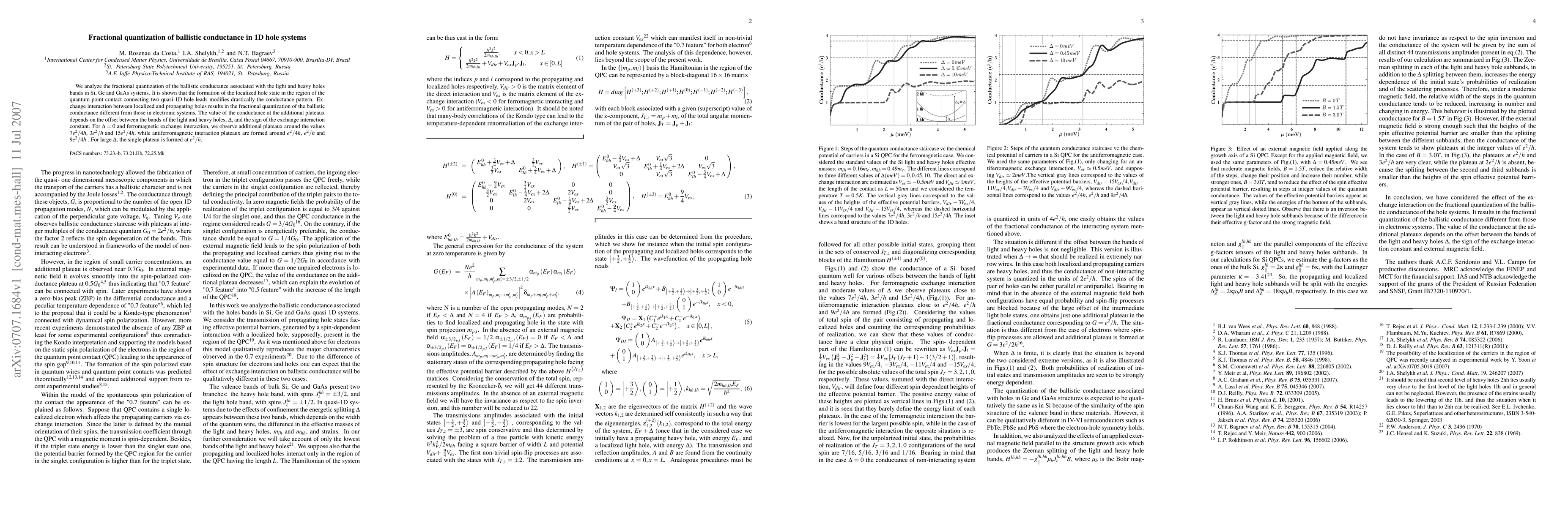 Briefly described research methodology used to analyze fractional quantization of ballistic conductance in 1D hole systems
