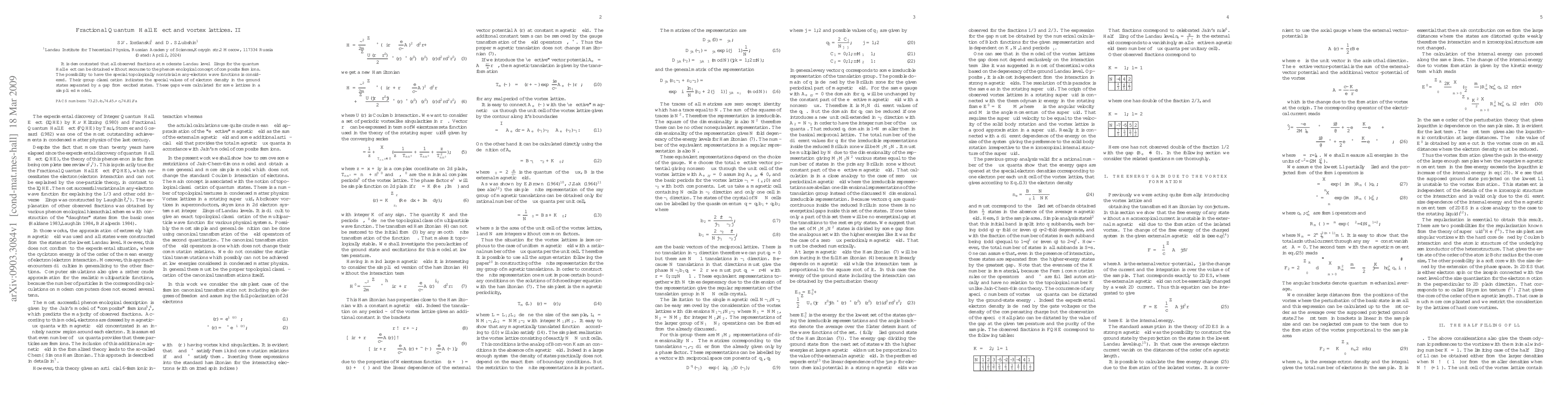 It is demonstrated that all observed fractions at moderate Landau level fillings for the quantum Hall effect can be obtained without recourse to the phenomenological concept of composite fermions. The possibility to have the special topologically nontrivial many-electron wave functions is considered. Their group classification indicates the special values of of electron density in the ground states separated by a gap from excited states. These gaps were calculated for some lattices in a simplified model.