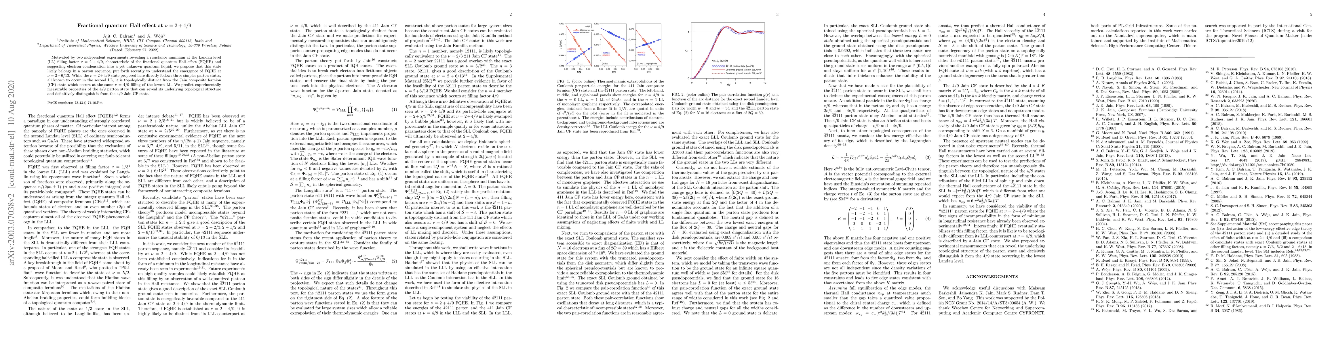 This paper proposes that the fractional quantum Hall effect observed at the filling factor $\nu=2+4/9$ likely emerges from a new parton sequence distinct from the Jain composite fermion state, and suggests measurable properties to distinguish it experimentally.