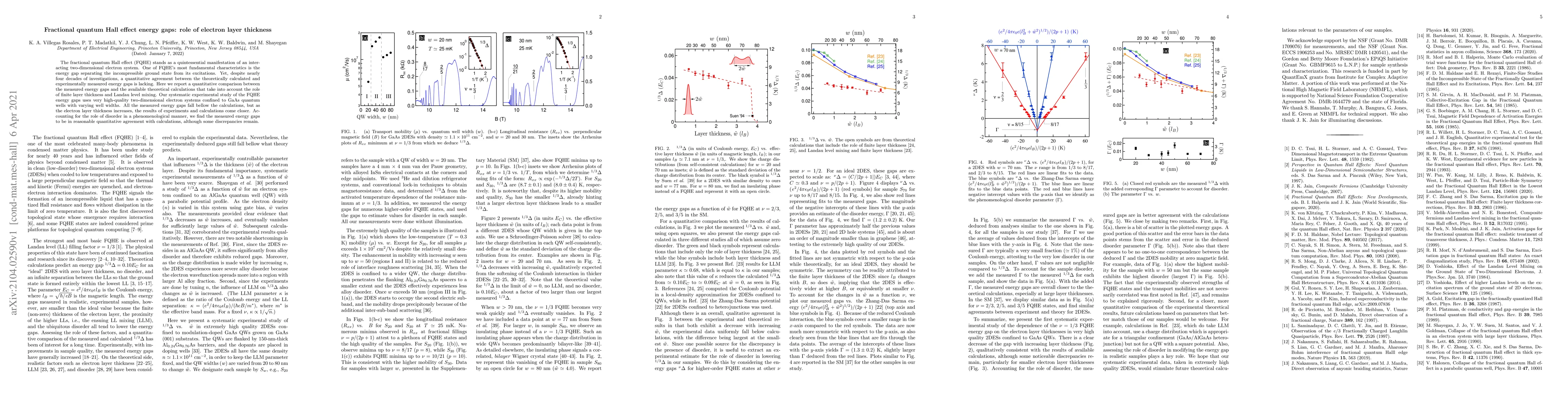 This study investigates the fractional quantum Hall effect (FQHE) energy gaps in GaAs quantum wells of varying thickness, revealing that measured gaps are generally lower than theoretical calculations but align better as thickness increases. Including disorder effects brings experimental results into reasonable quantitative agreement with theoretical predictions.