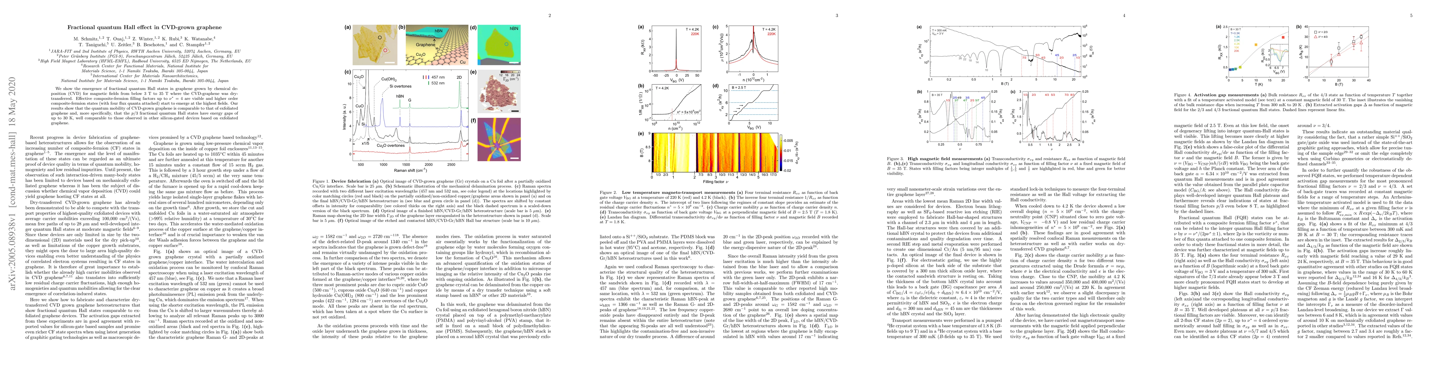 The study demonstrates the emergence of fractional quantum Hall states in CVD-grown graphene heterostructures, revealing effective composite-fermion filling factors up to $\nu^* = 4$ and energy gaps comparable to those in devices using exfoliated graphene. The quantum mobility of CVD-grown graphene matches that of exfoliated graphene.