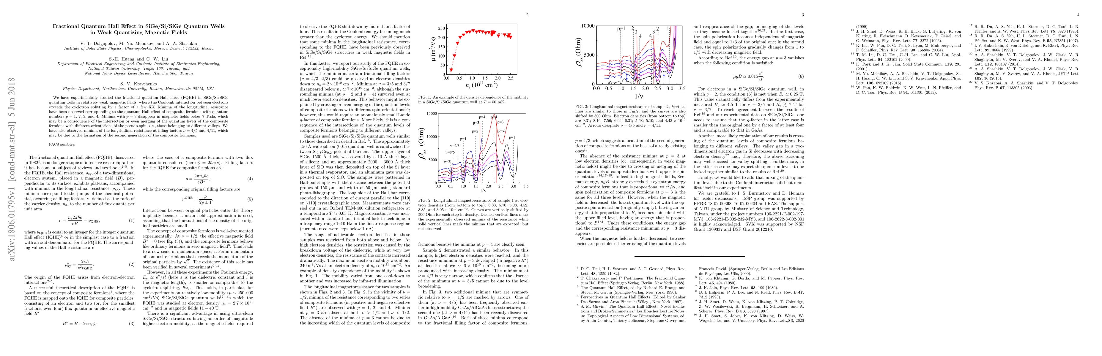 This study experimentally investigates the fractional quantum Hall effect in SiGe/Si/SiGe quantum wells under weak magnetic fields, revealing minima in longitudinal resistance corresponding to composite fermion quantum numbers. The disappearance of minima at $p$ = 3 below 7 Tesla suggests interactions between composite fermions of different pseudo-spin valleys.