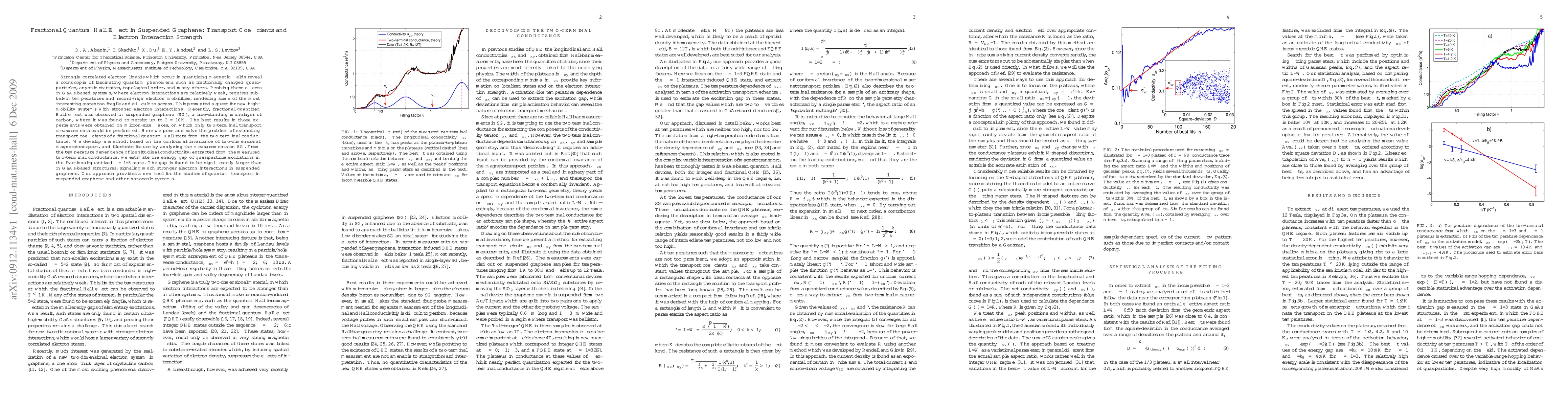 This paper explores the fractional quantum Hall effect in suspended graphene, developing a method to extract transport coefficients from two-terminal measurements. It finds a significantly larger energy gap in the nu=1/3 state compared to GaAs systems, indicating stronger electron interactions in graphene.