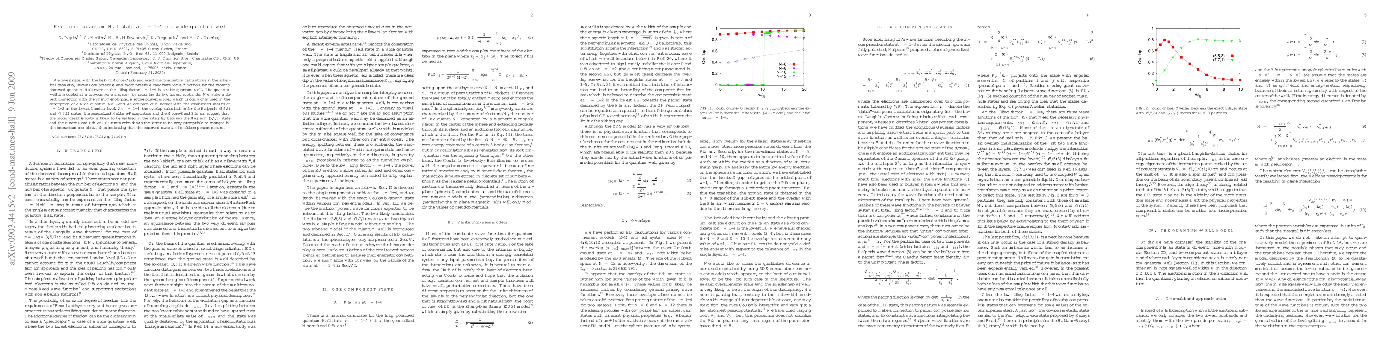 This paper explores the fractional quantum Hall state at $\nu=1/4$ in a wide quantum well using Monte-Carlo and exact-diagonalization methods, finding that the incompressible state likely arises from an interplay between the Halperin (5,5,3) and Moore-Read Pfaffian states. The results suggest a multicomponent nature due to the sensitivity of the Moore-Read Pfaffian to interaction changes.