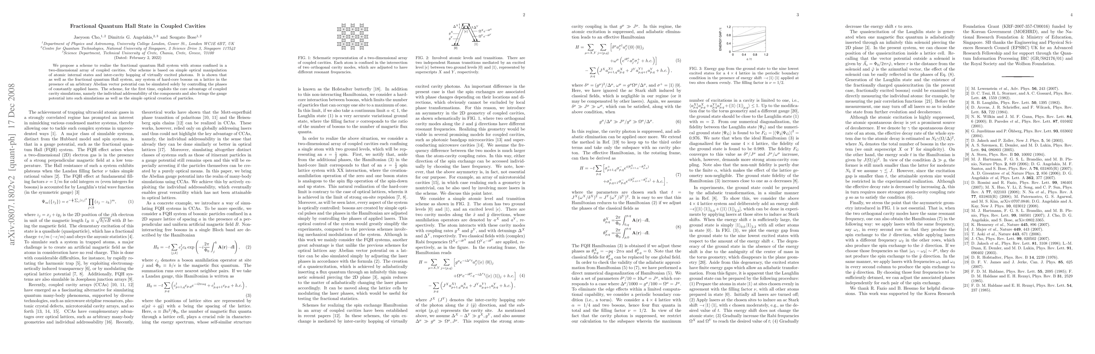 This paper proposes a method to simulate fractional quantum Hall states using atoms confined in coupled cavities, leveraging optical manipulation and photon hopping. The scheme enables the simulation of hard-core boson systems under Abelian vector potentials by controlling laser phases.
