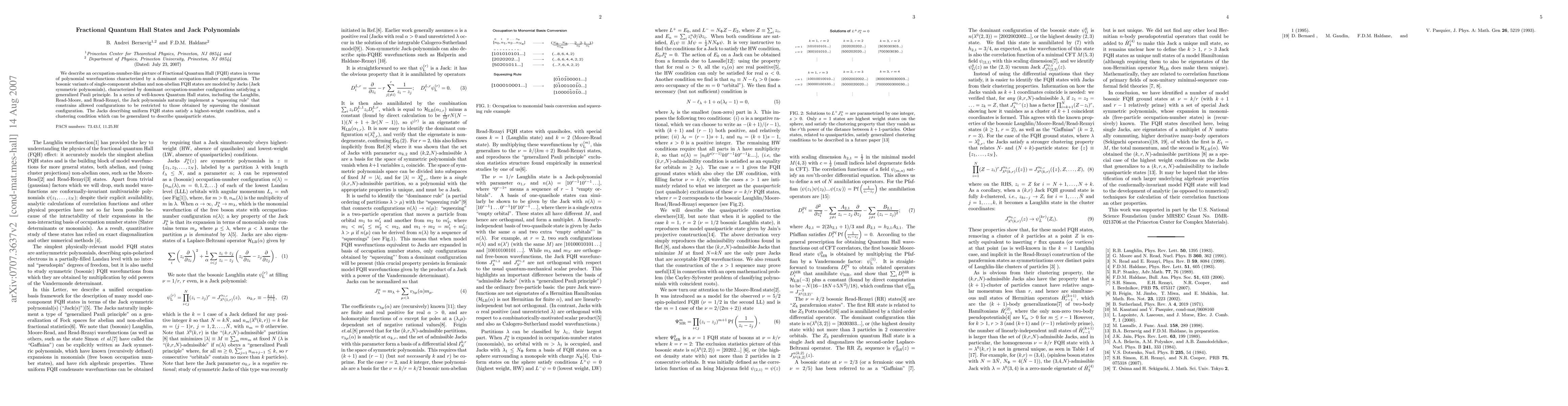 This paper presents a mathematical framework using Jack polynomials to describe Fractional Quantum Hall (FQH) states, focusing on the dominant occupation-number configurations and a generalized Pauli principle. The Jack polynomials implement a "squeezing rule" for well-known FQH states, satisfying highest-weight and clustering conditions that generalize to quasiparticle states.