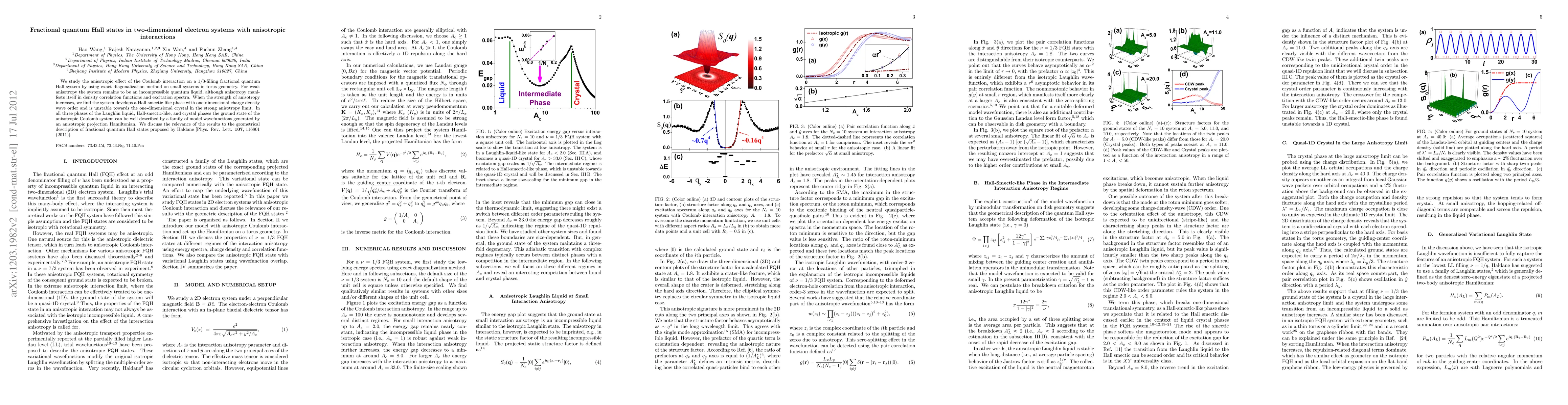 We study the anisotropic effect of the Coulomb interaction on a 1/3-filling fractional quantum Hall system by using an exact diagonalization method on small systems in torus geometry. For weak anisotropy the system remains to be an incompressible quantum liquid, although anisotropy manifests itself in density correlation functions and excitation spectra. When the strength of anisotropy increases, we find the system develops a Hall-smectic-like phase with a one-dimensional charge density wave order and is unstable towards the one-dimensional crystal in the strong anisotropy limit. In all three phases of the Laughlin liquid, Hall-smectic-like, and crystal phases the ground state of the anisotropic Coulomb system can be well described by a family of model wave functions generated by an anisotropic projection Hamiltonian. We discuss the relevance of the results to the geometrical description of fractional quantum Hall states proposed by Haldane [ Phys. Rev. Lett. 107 116801 (2011)].