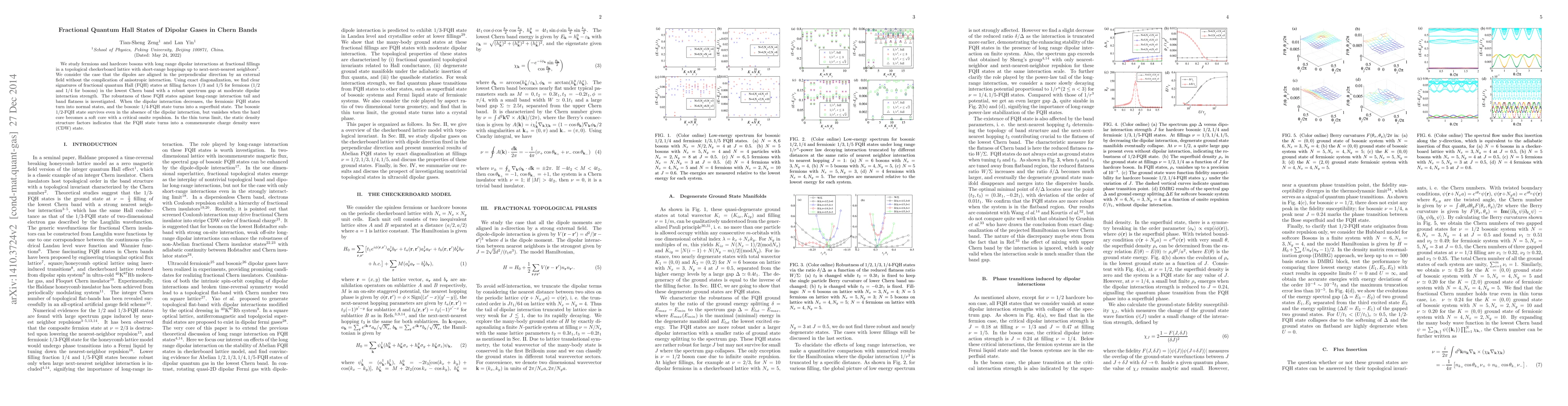 This paper investigates dipolar gases in a topological checkerboard lattice, revealing fractional quantum Hall states at specific filling factors, particularly 1/3 and 1/5 for fermions, and 1/2 and 1/4 for bosons. The study shows these states' robustness against long-range interactions and band flatness, with transitions to normal or superfluid states under varying dipolar interaction strengths.