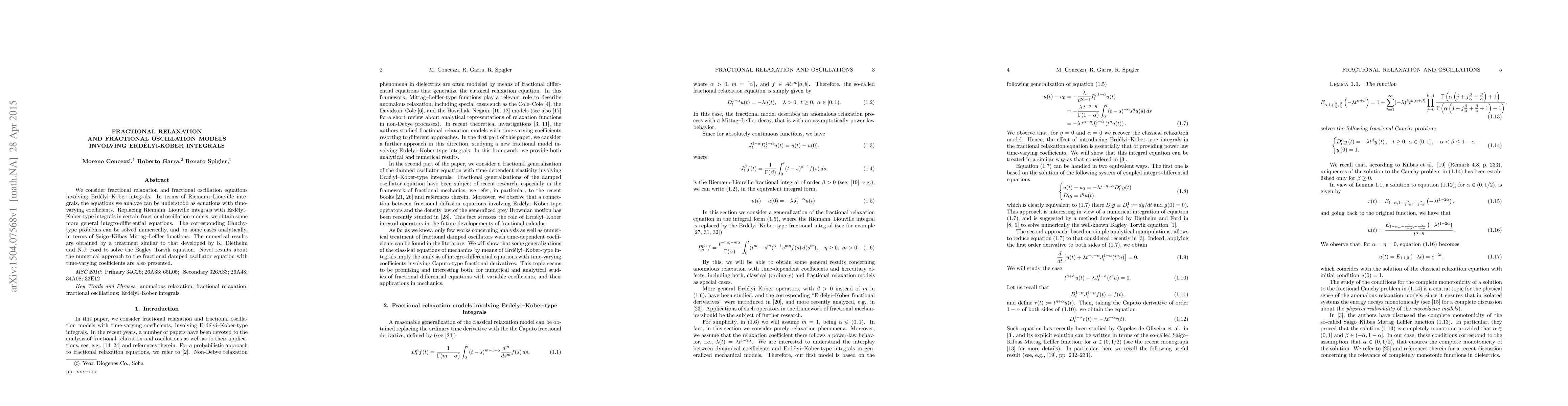 We consider fractional relaxation and fractional oscillation equations involving Erdelyi-Kober integrals. In terms of Riemann-Liouville integrals, the equations we analyze can be understood as equations with time-varying coefficients. Replacing Riemann-Liouville integrals with Erdelyi-Kober-type integrals in certain fractional oscillation models, we obtain some more general integro-differential equations. The corresponding Cauchy-type problems can be solved numerically, and, in some cases analytically, in terms of Saigo-Kilbas Mittag-Leffler functions. The numerical results are obtained by a treatment similar to that developed by K. Diethelm and N.J. Ford to solve the Bagley-Torvik equation. Novel results about the numerical approach to the fractional damped oscillator equation with time-varying coefficients are also presented.