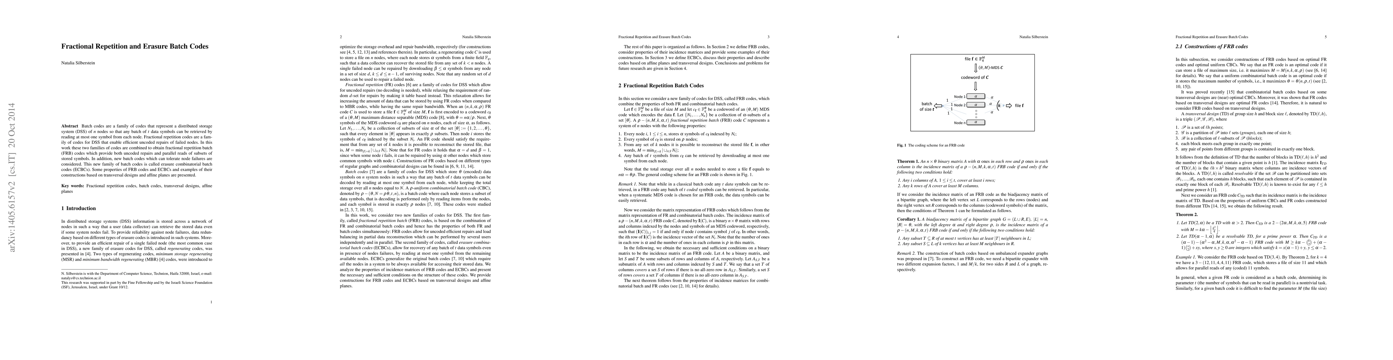 This paper combines fractional repetition codes with batch codes to create fractional repetition batch (FRB) codes, enabling efficient uncoded repairs and parallel reads. It also introduces erasure combinatorial batch codes (ECBCs) to tolerate node failures, presenting constructions based on transversal designs and affine planes.