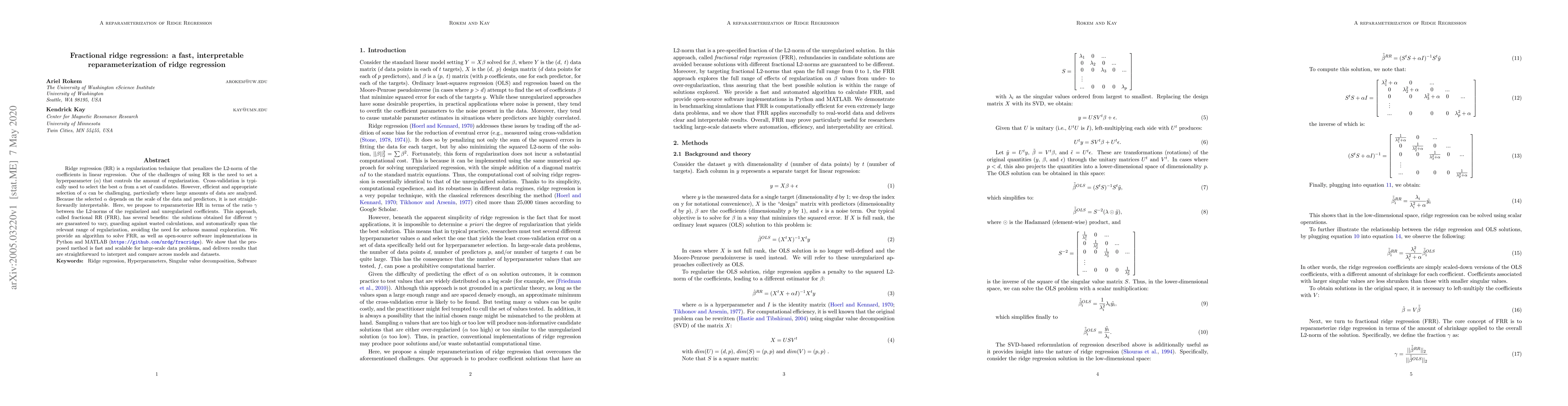 This paper proposes Fractional Ridge Regression, a fast and interpretable method that reparameterizes ridge regression to remove the need for hyperparameter tuning through cross-validation.