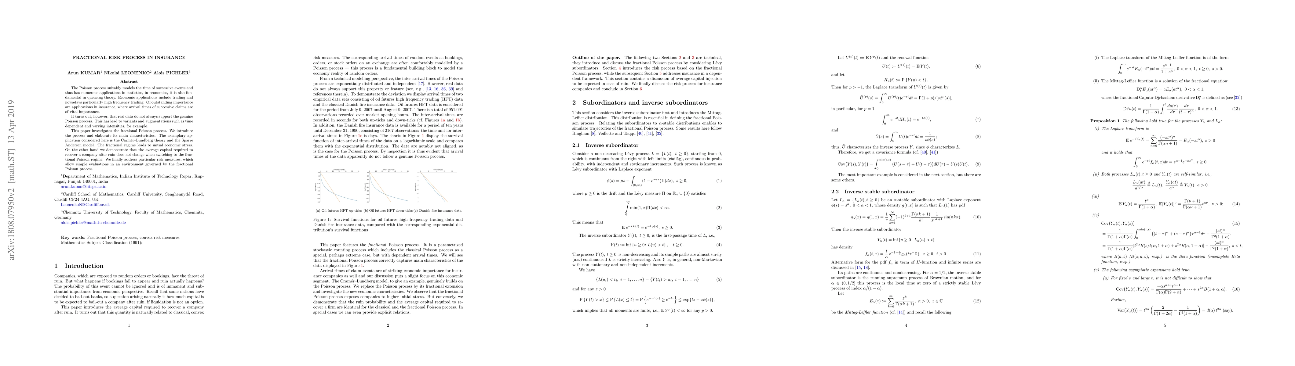 A new study extends insurance models that rely on Poisson processes to incorporate fractional Poisson processes, showing no change in average capital required after ruin but offering simpler evaluations of risk measures.