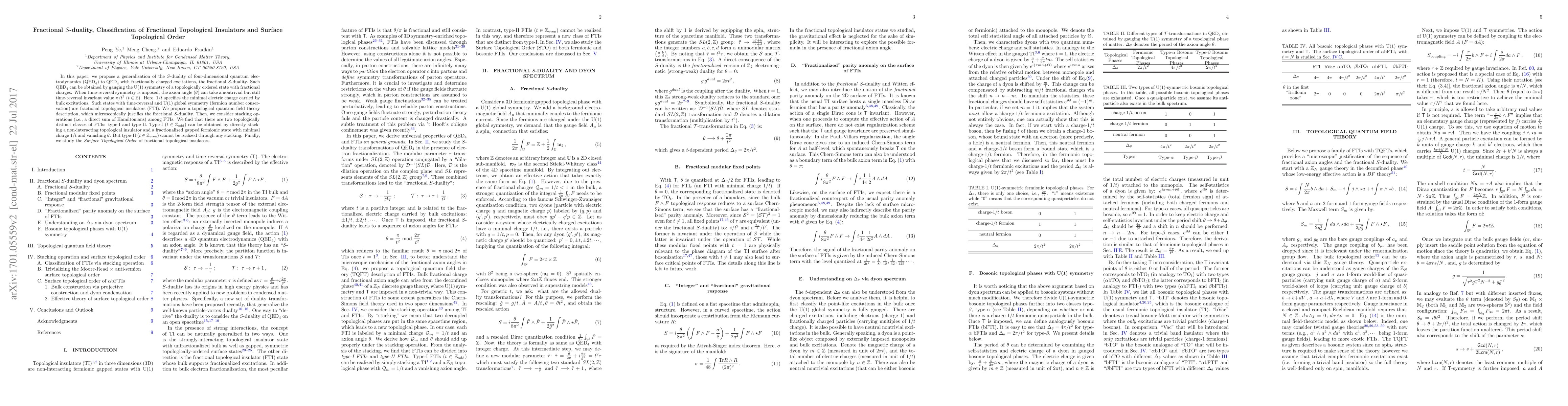 This paper generalizes $S$-duality in $\text{QED}_4$ to include fractional charges, proposing a framework for fractional topological insulators (FTIs) under time-reversal symmetry. It classifies FTIs into type-I and type-II based on stacking operations, and explores their surface topological order.