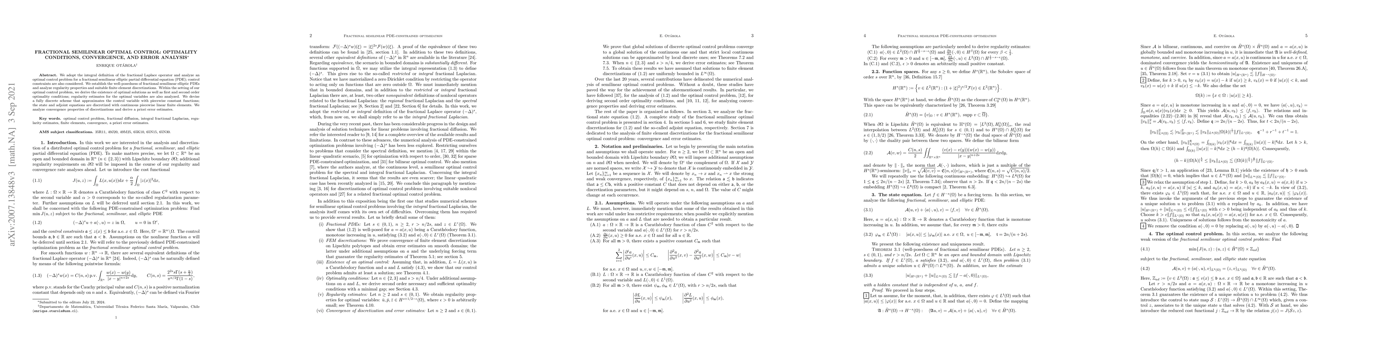 This paper investigates an optimal control problem for fractional semilinear elliptic PDEs, establishing well-posedness and deriving first and second-order optimality conditions. It also develops a fully discrete finite element scheme and provides convergence analysis and a priori error estimates.