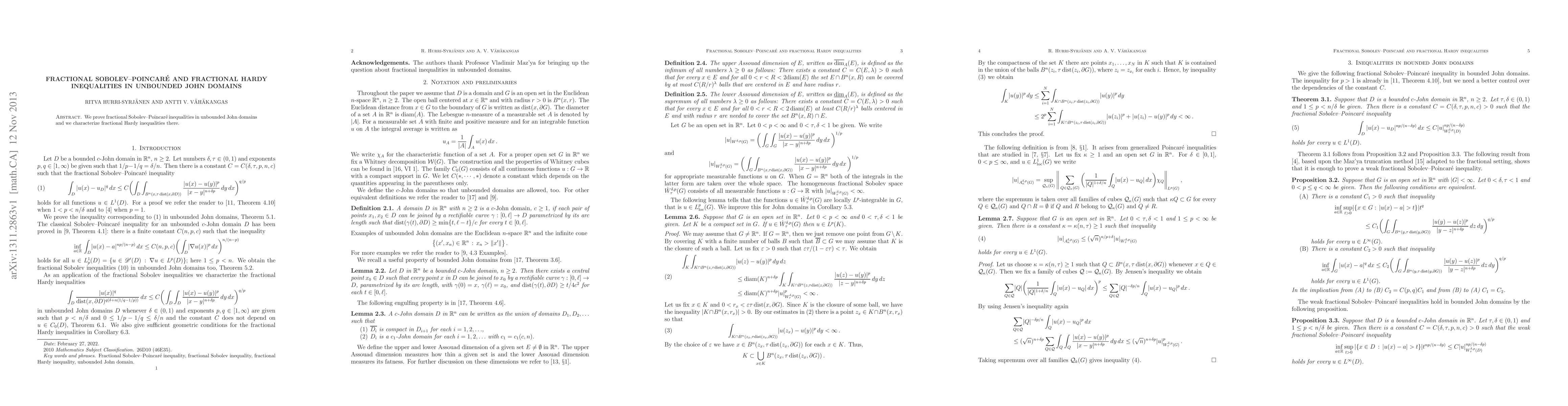 Summary: This research establishes fractional Sobolev-Poincaré inequalities in unbounded John domains and thoroughly characterizes associated fractional Hardy inequalities within these domains.