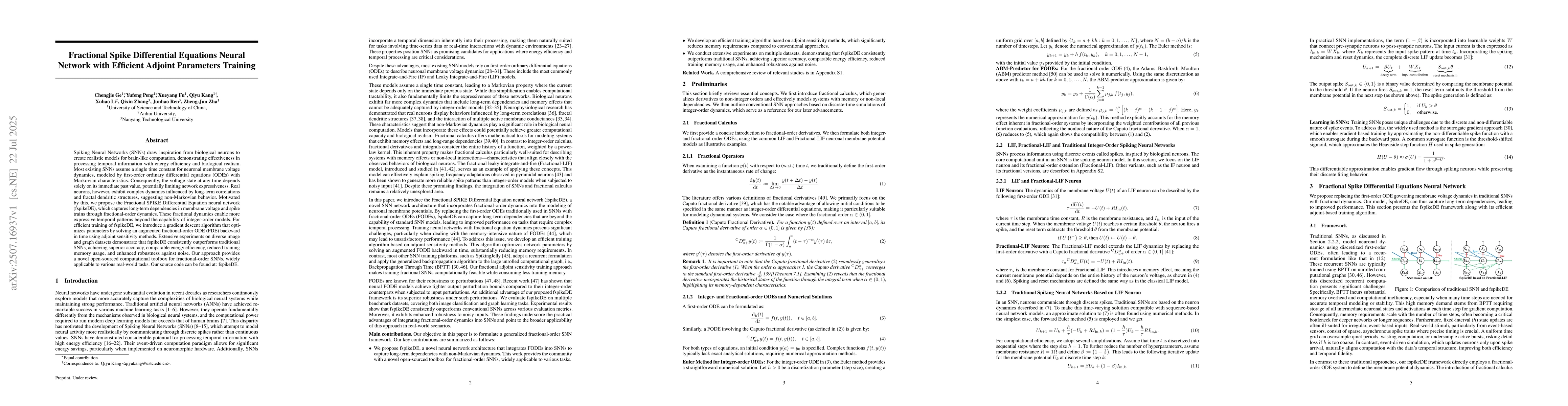 Spiking Neural Networks (SNNs) draw inspiration from biological neurons to create realistic models for brain-like computation, demonstrating effectiveness in processing temporal information with energy efficiency and biological realism. Most existing SNNs assume a single time constant for neuronal membrane voltage dynamics, modeled by first-order ordinary differential equations (ODEs) with Markovian characteristics. Consequently, the voltage state at any time depends solely on its immediate past value, potentially limiting network expressiveness. Real neurons, however, exhibit complex dynamics influenced by long-term correlations and fractal dendritic structures, suggesting non-Markovian behavior. Motivated by this, we propose the Fractional SPIKE Differential Equation neural network (fspikeDE), which captures long-term dependencies in membrane voltage and spike trains through fractional-order dynamics. These fractional dynamics enable more expressive temporal patterns beyond the capability of integer-order models. For efficient training of fspikeDE, we introduce a gradient descent algorithm that optimizes parameters by solving an augmented fractional-order ODE (FDE) backward in time using adjoint sensitivity methods. Extensive experiments on diverse image and graph datasets demonstrate that fspikeDE consistently outperforms traditional SNNs, achieving superior accuracy, comparable energy efficiency, reduced training memory usage, and enhanced robustness against noise. Our approach provides a novel open-sourced computational toolbox for fractional-order SNNs, widely applicable to various real-world tasks.
