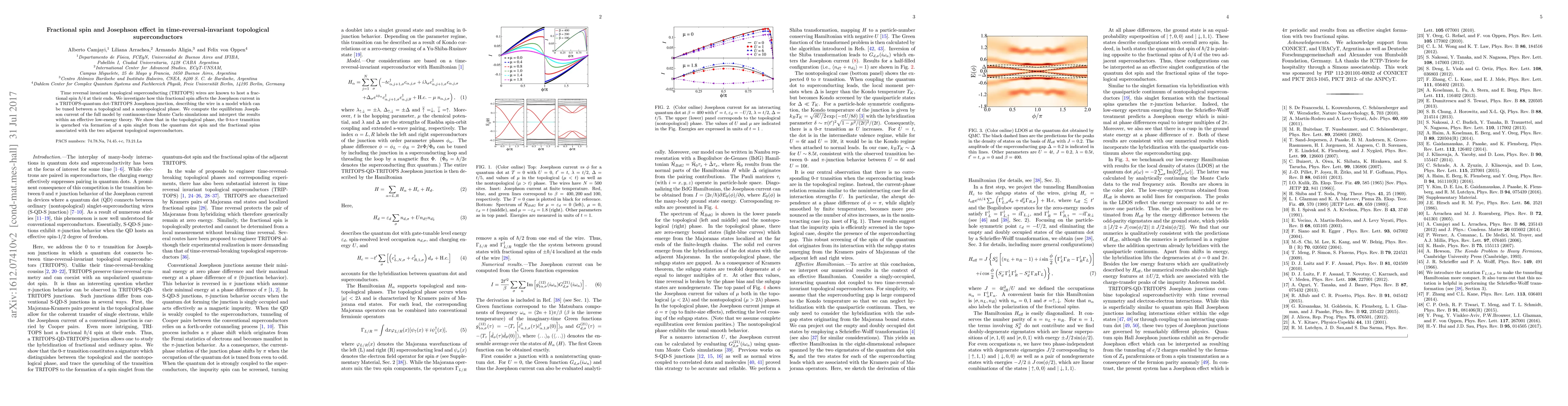 Time reversal invariant topological superconducting (TRITOPS) wires are known to host a fractional spin hbar/4 at their ends. We investigate how this fractional spin affects the Josephson current in a TRITOPS-quantum dot-TRITOPS Josephson junction, describing the wire in a model which can be tuned between a topological and a nontopological phase. We compute the equilibrium Josephson current of the full model by continuous-time Monte Carlo simulations and interpret the results within an effective low-energy theory. We show that in the topological phase, the 0-to-pi transition is quenched via formation of a spin singlet from the quantum dot spin and the fractional spins associated with the two adjacent topological superconductors.