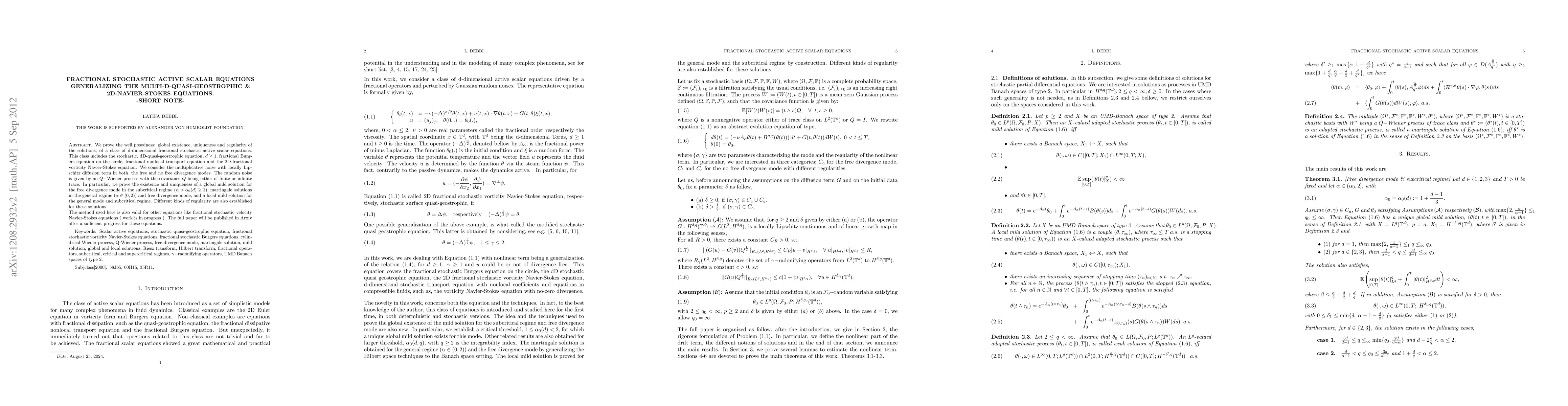 We prove the well posedness: global existence, uniqueness and regularity of the solutions, of a class of d-dimensional fractional stochastic active scalar equations. This class includes the stochastic, dD-quasi-geostrophic equation, $ d\geq 1$, fractional Burgers equation on the circle, fractional nonlocal transport equation and the 2D-fractional vorticity Navier-Stokes equation. We consider the multiplicative noise with locally Lipschitz diffusion term in both, the free and no free divergence modes. The random noise is given by an $Q-$Wiener process with the covariance $Q$ being either of finite or infinite trace. In particular, we prove the existence and uniqueness of a global mild solution for the free divergence mode in the subcritical regime ($\alpha>\alpha_0(d)\geq 1$), martingale solutions in the general regime ($\alpha\in (0, 2)$) and free divergence mode, and a local mild solution for the general mode and subcritical regime. Different kinds of regularity are also established for these solutions. The method used here is also valid for other equations like fractional stochastic velocity Navier-Stokes equations (work is in progress). The full paper will be published in Arxiv after a sufficient progress for these equations.