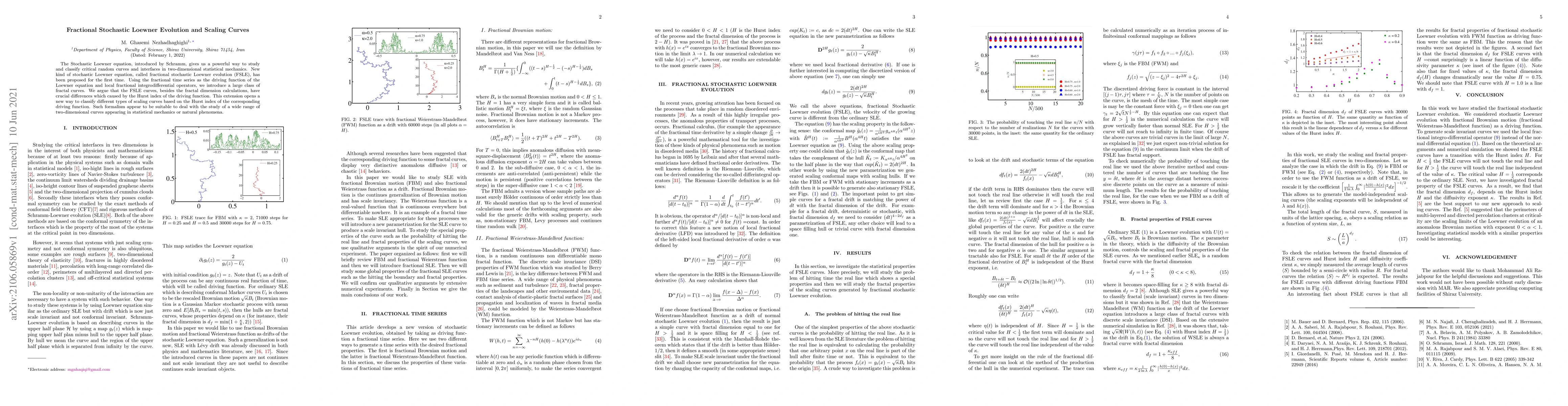 The paper introduces the fractional stochastic Loewner evolution (FSLE) to study critical random curves in two-dimensional statistical mechanics, using fractional time series as the driving function. It argues that FSLE curves differ based on the Hurst index, providing a new classification method for scaling curves.