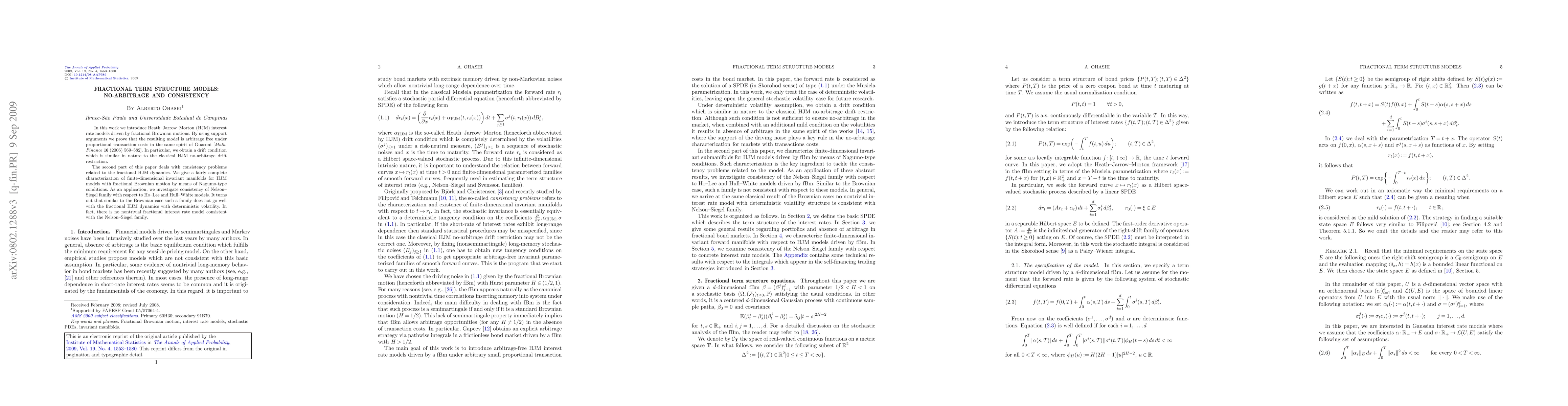 In this work we introduce Heath-Jarrow-Morton (HJM) interest rate models driven by fractional Brownian motions. By using support arguments we prove that the resulting model is arbitrage free under proportional transaction costs in the same spirit of Guasoni [Math. Finance 16 (2006) 569-582]. In particular, we obtain a drift condition which is similar in nature to the classical HJM no-arbitrage drift restriction. The second part of this paper deals with consistency problems related to the fractional HJM dynamics. We give a fairly complete characterization of finite-dimensional invariant manifolds for HJM models with fractional Brownian motion by means of Nagumo-type conditions. As an application, we investigate consistency of Nelson-Siegel family with respect to Ho-Lee and Hull-White models. It turns out that similar to the Brownian case such a family does not go well with the fractional HJM dynamics with deterministic volatility. In fact, there is no nontrivial fractional interest rate model consistent with the Nelson-Siegel family.