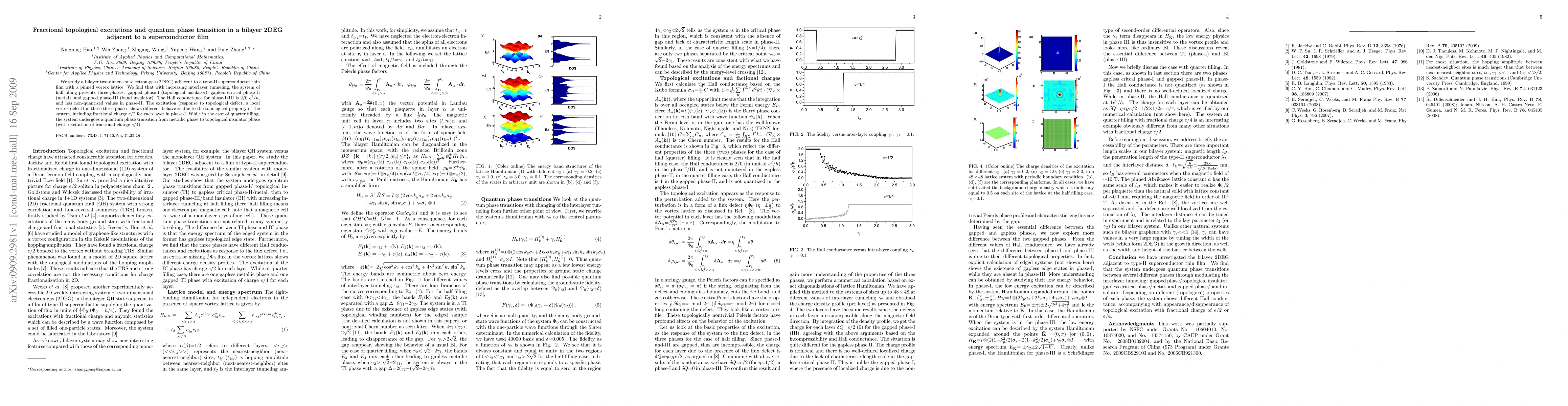 This paper investigates a bilayer 2DEG near a superconductor, revealing three phases with distinct topological properties and fractional excitations. At half filling, phases exhibit quantized Hall conductance and fractional charge $e/2$, while quarter filling induces a quantum phase transition to a topological insulator with $e/4$ charge.