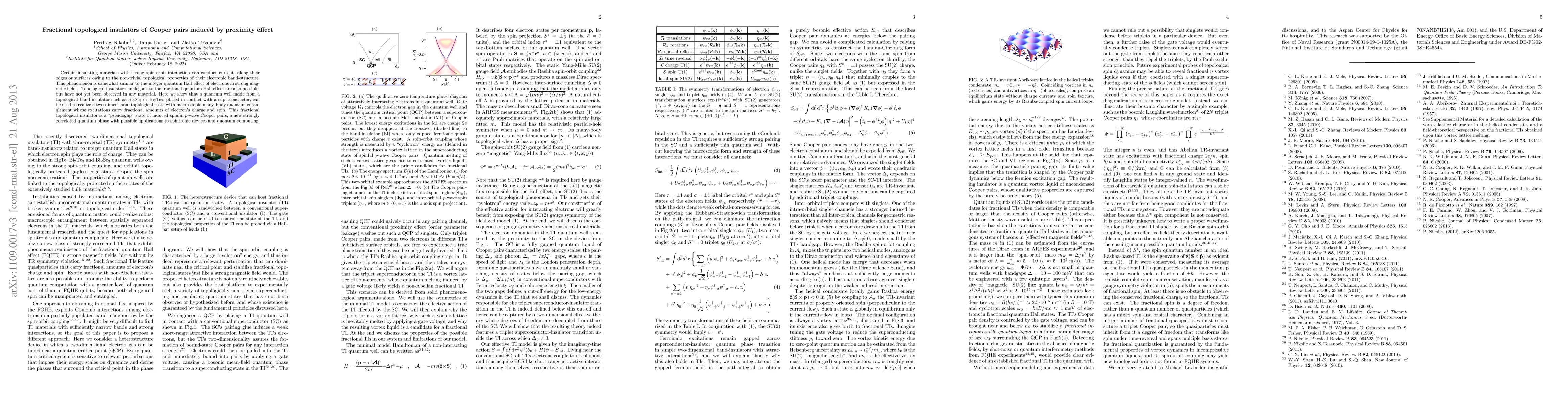 This paper demonstrates the realization of a fractional topological insulator through the proximity effect between a topological band insulator and a superconductor, resulting in a state with fractional charge and spin excitations. This "pseudogap" state of induced spinful p-wave Cooper pairs has significant implications for quantum field theory, spintronics, and quantum computing.