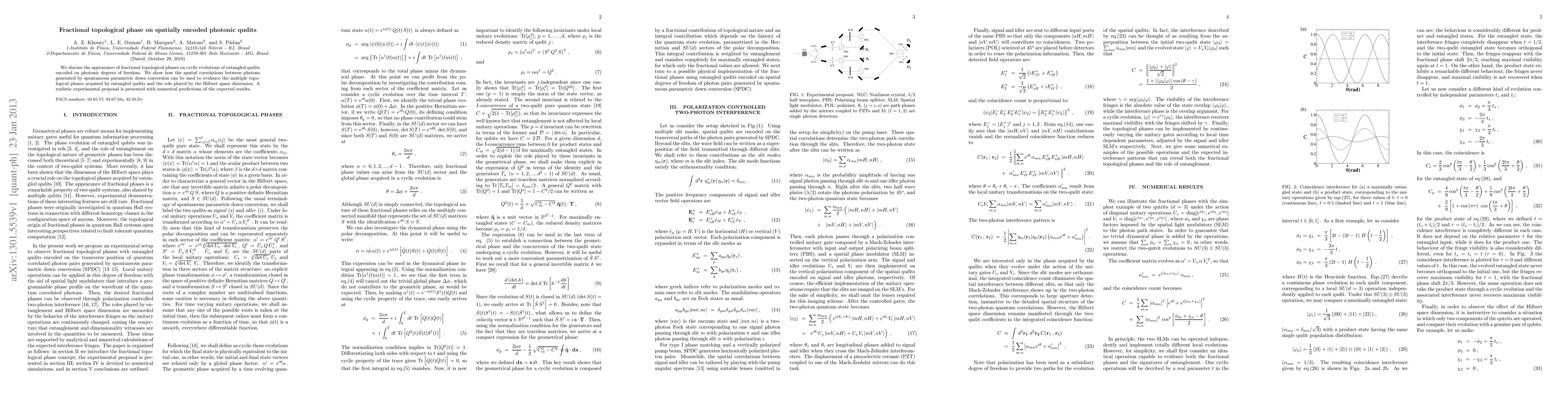 This paper explores fractional topological phases in entangled photonic qudits, demonstrating how spatial correlations from spontaneous parametric down conversion reveal these phases. An experimental proposal is provided with numerical predictions for expected outcomes.
