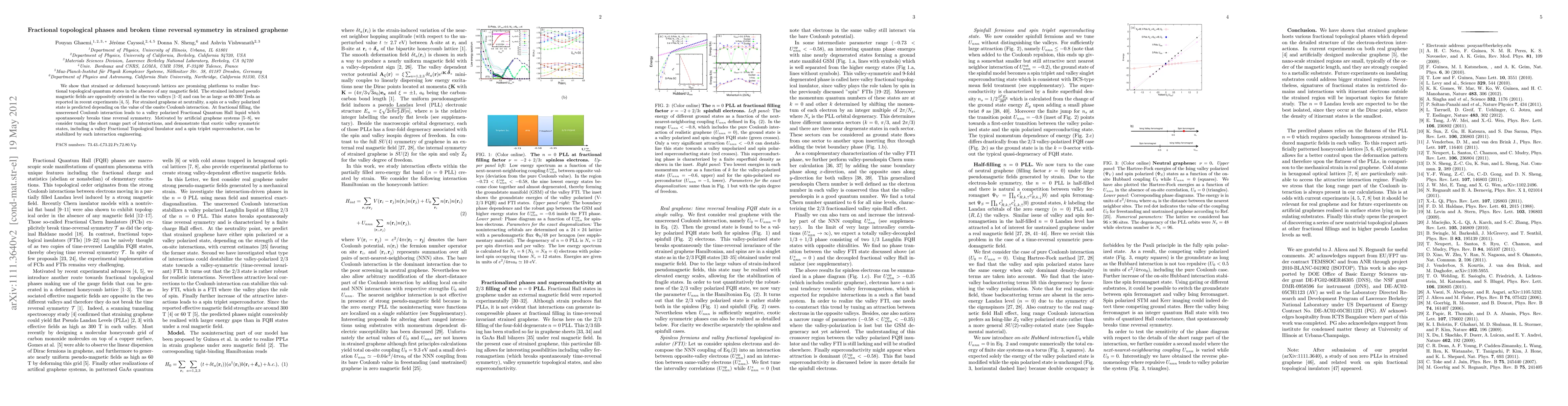 This paper demonstrates that strained graphene can exhibit fractional topological phases without a magnetic field, driven by pseudo magnetic fields induced by the strain. At fractional filling, it predicts a valley polarized Fractional Quantum Hall liquid that breaks time reversal symmetry, and explores how interaction engineering can stabilize exotic valley symmetric states.