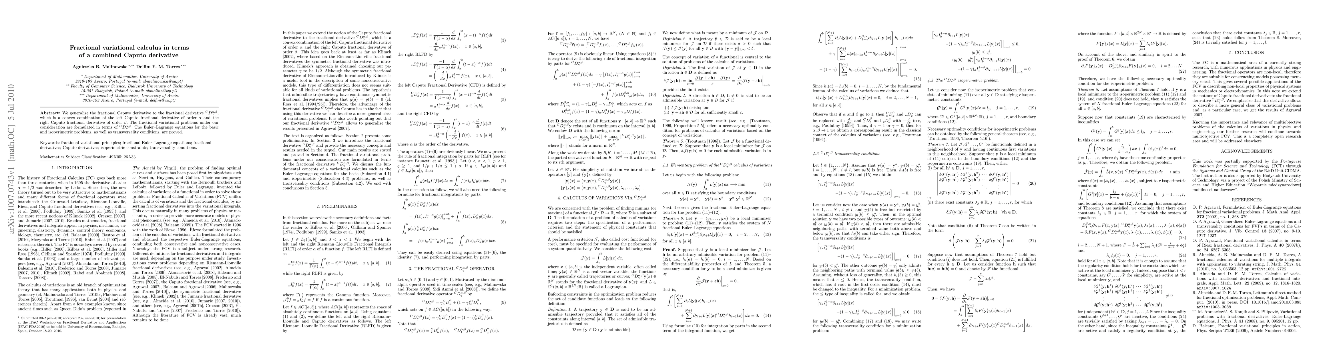 This paper generalizes the fractional Caputo derivative to a combined form, ${^CD^{\alpha,\beta}_{\gamma}}$, and formulates fractional variational problems using this derivative. It also proves Euler-Lagrange equations and transversality conditions for basic and isoperimetric problems.