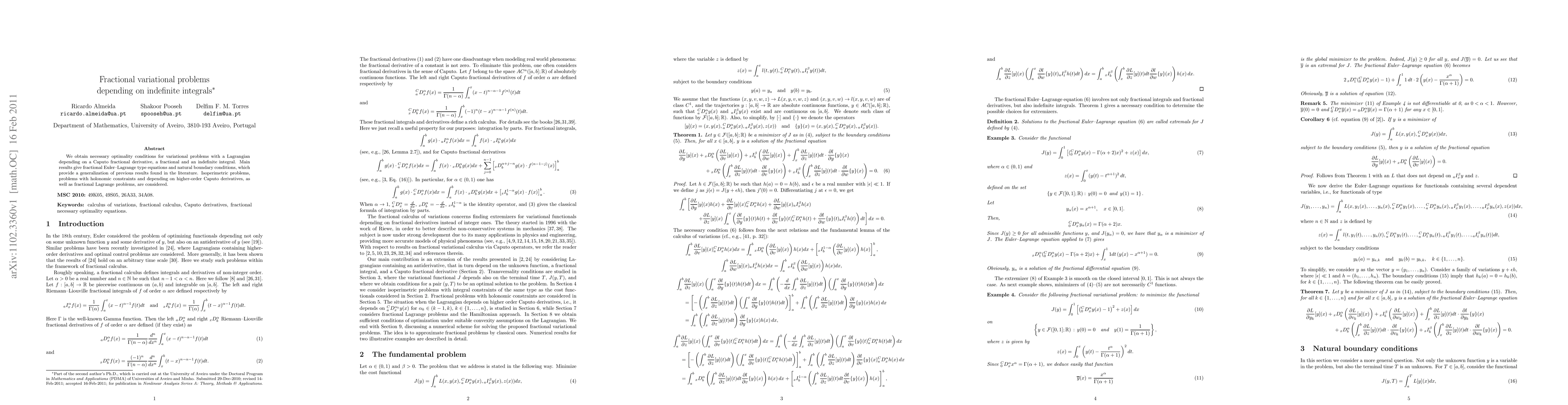 This paper derives necessary optimality conditions for fractional variational problems involving Caputo fractional derivatives and indefinite integrals, presenting generalized fractional Euler-Lagrange equations and natural boundary conditions. It also explores isoperimetric problems, holonomic constraints, and higher-order Caputo derivatives within the fractional Lagrange framework.