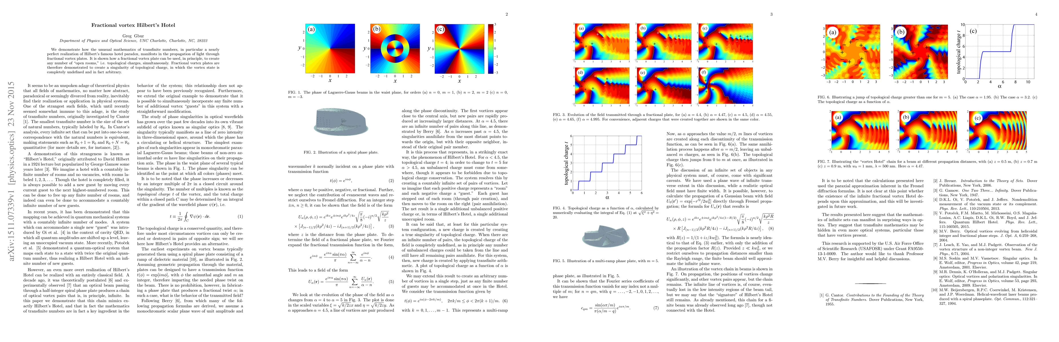 We demonstrate how the unusual mathematics of transfinite numbers, in particular a nearly perfect realization of Hilbert's famous hotel paradox, manifests in the propagation of light through fractional vortex plates. It is shown how a fractional vortex plate can be used, in principle, to create any number of "open rooms," i.e. topological charges, simultaneously. Fractional vortex plates are therefore demonstrated to create a singularity of topological charge, in which the vortex state is completely undefined and in fact arbitrary.