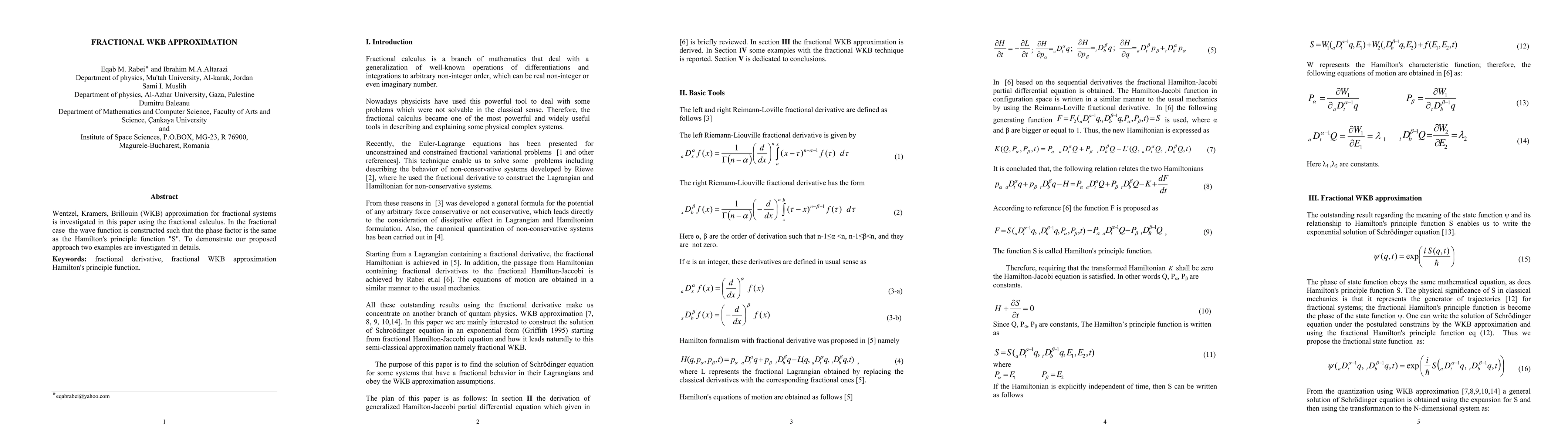 This paper investigates the Wentzel-Kramers-Brillouin approximation for fractional systems using fractional calculus, demonstrating its approach through two detailed examples.