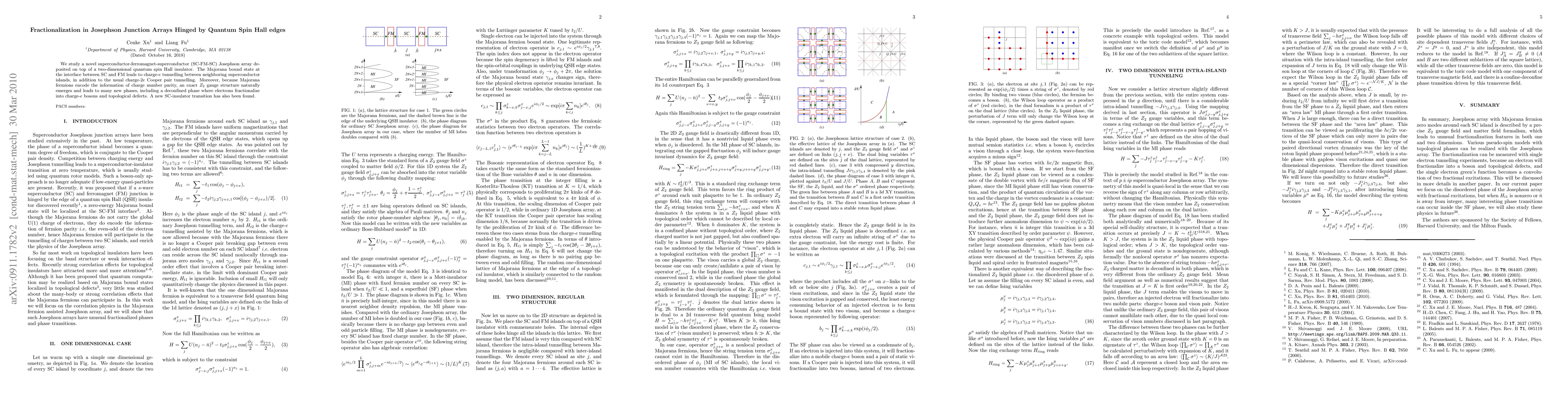 This paper investigates a superconductor-ferromagnet-superconductor Josephson junction array on a quantum spin Hall insulator, revealing Majorana bound states that enable charge-e tunneling alongside Cooper pair tunneling. The study uncovers a new Z_2 gauge structure and fractionalized phases, including a deconfined phase where electrons split into charge-e bosons, along with a novel superconductor-insulator transition.