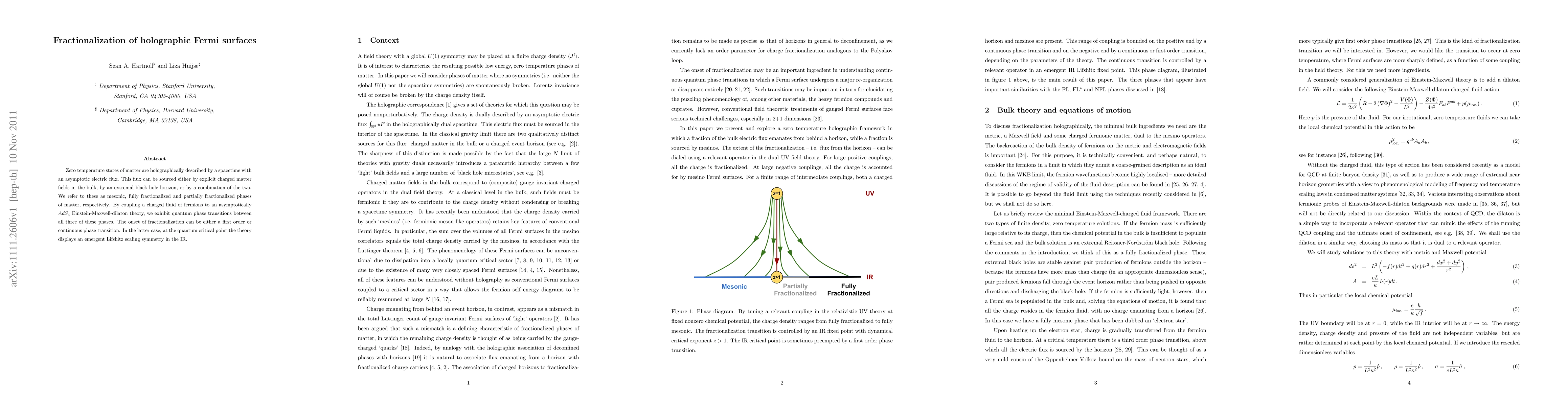 Zero temperature states of matter are holographically described by a spacetime with an asymptotic electric flux. This flux can be sourced either by explicit charged matter fields in the bulk, by an extremal black hole horizon, or by a combination of the two. We refer to these as mesonic, fully fractionalized and partially fractionalized phases of matter, respectively. By coupling a charged fluid of fermions to an asymptotically AdS_4 Einstein-Maxwell-dilaton theory, we exhibit quantum phase transitions between all three of these phases. The onset of fractionalization can be either a first order or continuous phase transition. In the latter case, at the quantum critical point the theory displays an emergent Lifshitz scaling symmetry in the IR.