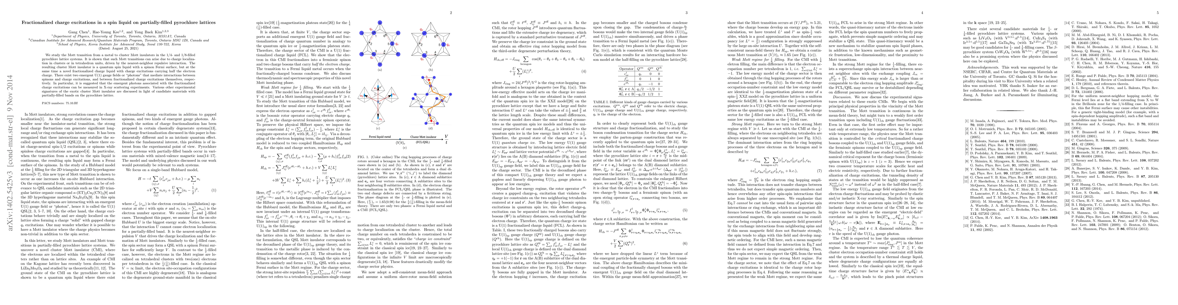 This paper investigates the Mott transition in 1/4- and 1/8-filled pyrochlore lattice systems, revealing that it leads to a cluster Mott insulator characterized by a quantum spin liquid with fractionalized charge excitations carrying half the electron charge. The study highlights the presence of emergent U(1) gauge fields that mediate interactions, suggesting potential experimental detection via X-ray scattering.