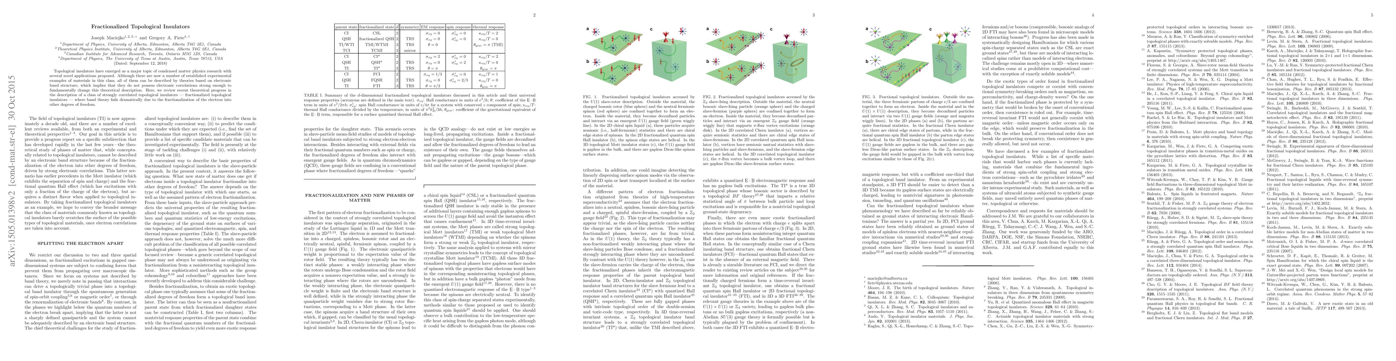 Topological insulators have emerged as a major topic of condensed matter physics research with several novel applications proposed. Although there are now a number of established experimental examples of materials in this class, all of them can be described by theories based on electronic band structure, which implies that they do not possess electronic correlations strong enough to fundamentally change this theoretical description. Here, we review recent theoretical progress in the description of a class of strongly correlated topological insulators - fractionalized topological insulators - where band theory fails dramatically due to the fractionalization of the electron into other degrees of freedom.