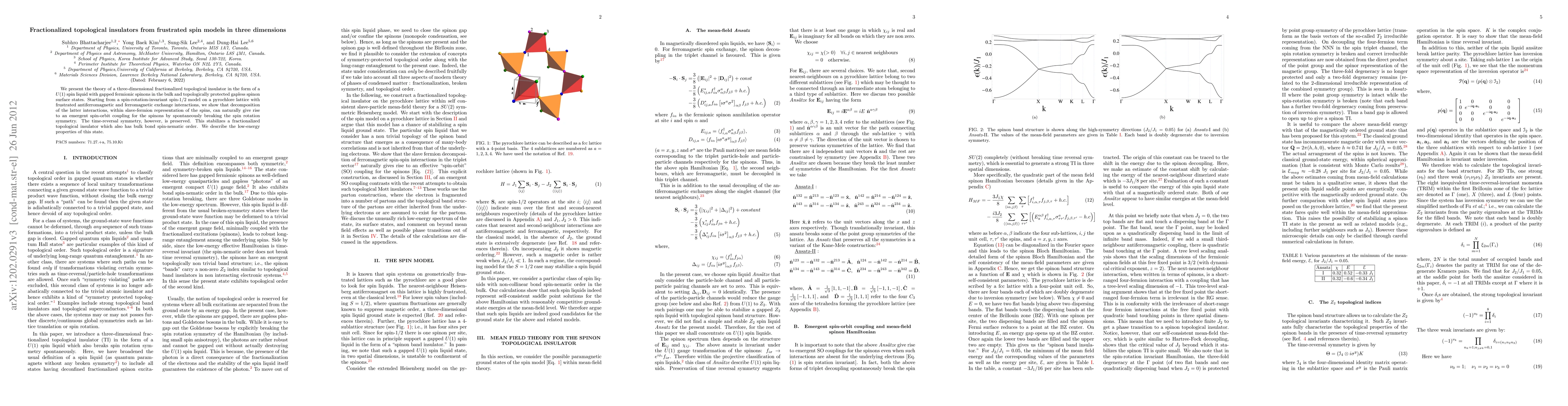 This paper develops a theoretical framework for three-dimensional fractionalized topological insulators, characterized by U(1) spin liquids, featuring gapless spinon surface states protected topologically and bulk spin-nematic order, emerging from frustrated spin models on a pyrochlore lattice. The slave-fermion representation reveals an emergent spin-orbit coupling in the spinons.