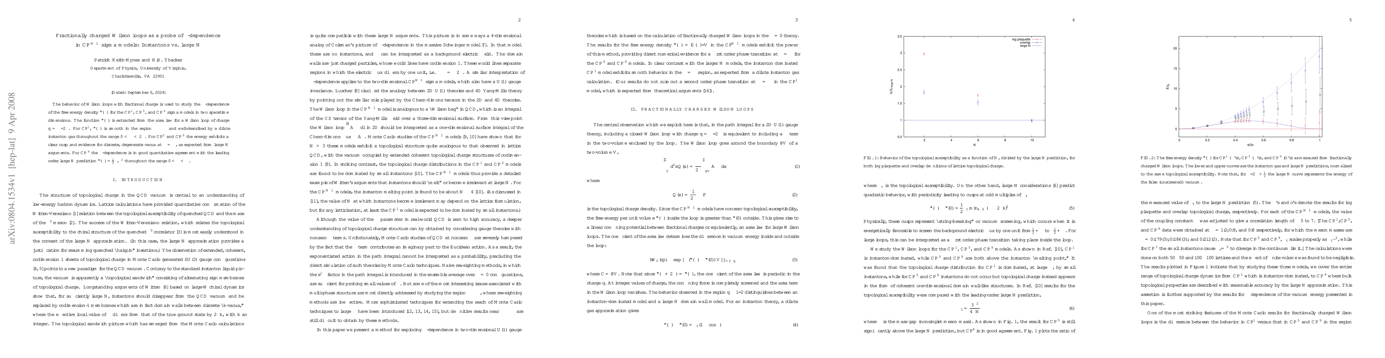 The behavior of Wilson loops with fractional charge is used to study the $\theta$-dependence of the free energy density $\epsilon(\theta)$ for the $CP^1$, $CP^5$, and $CP^9$ sigma models in two spacetime dimensions. The function $\epsilon(\theta)$ is extracted from the area law for a Wilson loop of charge $q=\theta/2\pi$. For $CP^1$, $\epsilon(\theta)$ is smooth in the region $\theta\approx\pi$ and well-described by a dilute instanton gas throughout the range $0<\theta<2\pi$. For $CP^5$ and $CP^9$ the energy exhibits a clear cusp and evidence for discrete, degenerate vacua at $\theta = \pi$, as expected from large $N$ arguments. For $CP^9$ the $\theta$-dependence is in good quantitative agreement with the leading order large $N$ prediction $\epsilon(\theta)={1/2}\chi_t\theta^2$ throughout the range $0<\theta<\pi$.