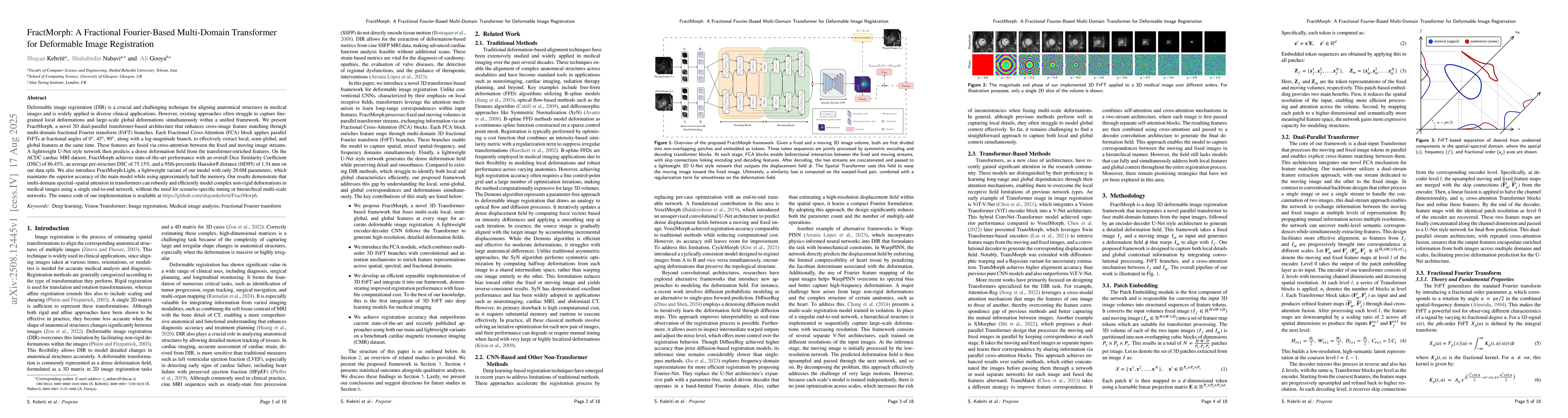 Deformable image registration (DIR) is a crucial and challenging technique for aligning anatomical structures in medical images and is widely applied in diverse clinical applications. However, existing approaches often struggle to capture fine-grained local deformations and large-scale global deformations simultaneously within a unified framework. We present FractMorph, a novel 3D dual-parallel transformer-based architecture that enhances cross-image feature matching through multi-domain fractional Fourier transform (FrFT) branches. Each Fractional Cross-Attention (FCA) block applies parallel FrFTs at fractional angles of 0{\deg}, 45{\deg}, 90{\deg}, along with a log-magnitude branch, to effectively extract local, semi-global, and global features at the same time. These features are fused via cross-attention between the fixed and moving image streams. A lightweight U-Net style network then predicts a dense deformation field from the transformer-enriched features. On the ACDC cardiac MRI dataset, FractMorph achieves state-of-the-art performance with an overall Dice Similarity Coefficient (DSC) of 86.45%, an average per-structure DSC of 75.15%, and a 95th-percentile Hausdorff distance (HD95) of 1.54 mm on our data split. We also introduce FractMorph-Light, a lightweight variant of our model with only 29.6M parameters, which maintains the superior accuracy of the main model while using approximately half the memory. Our results demonstrate that multi-domain spectral-spatial attention in transformers can robustly and efficiently model complex non-rigid deformations in medical images using a single end-to-end network, without the need for scenario-specific tuning or hierarchical multi-scale networks. The source code of our implementation is available at https://github.com/shayankebriti/FractMorph.