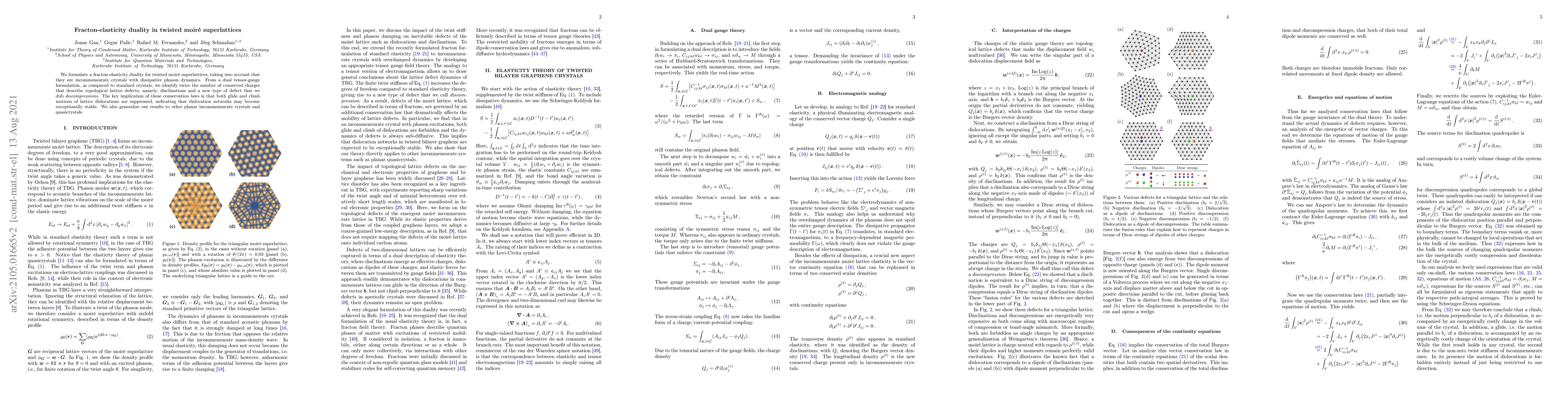 This paper formulates a fracton-elasticity duality for twisted moiré superlattices, revealing twice the number of conserved charges for topological defects, which suppresses lattice dislocation motions and enhances stability. The findings extend to other incommensurate crystals and quasicrystals.