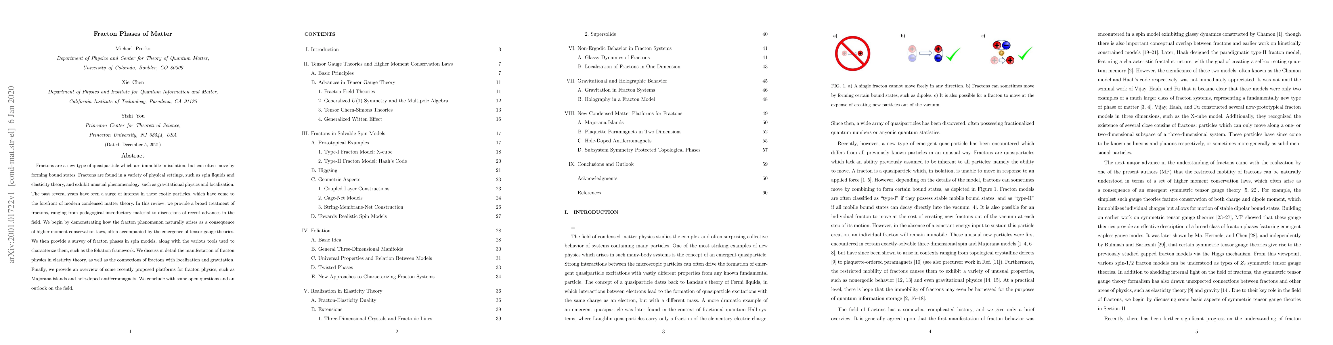 The paper provides a broad review of fracton phases of matter, discussing their origins from higher moment conservation laws, emergence of tensor gauge theories, and their manifestations in various physical settings like spin models and elasticity theory.