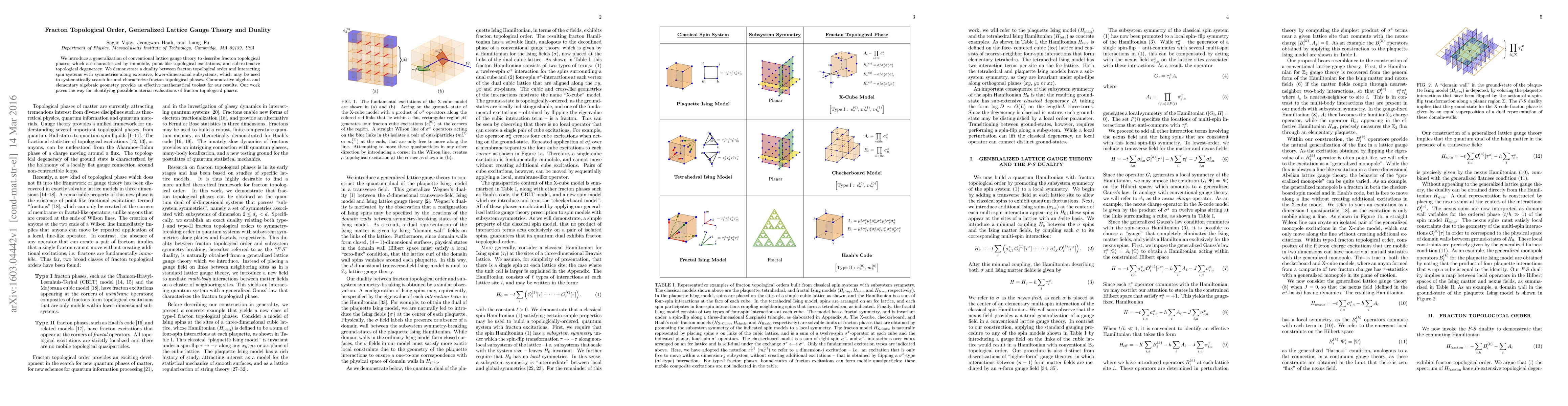 This paper generalizes lattice gauge theory to describe fracton topological phases, characterized by immobile excitations, and shows a duality with interacting spin systems. The research uses algebraic geometry to systematically explore these phases and opens avenues for potential material realizations.