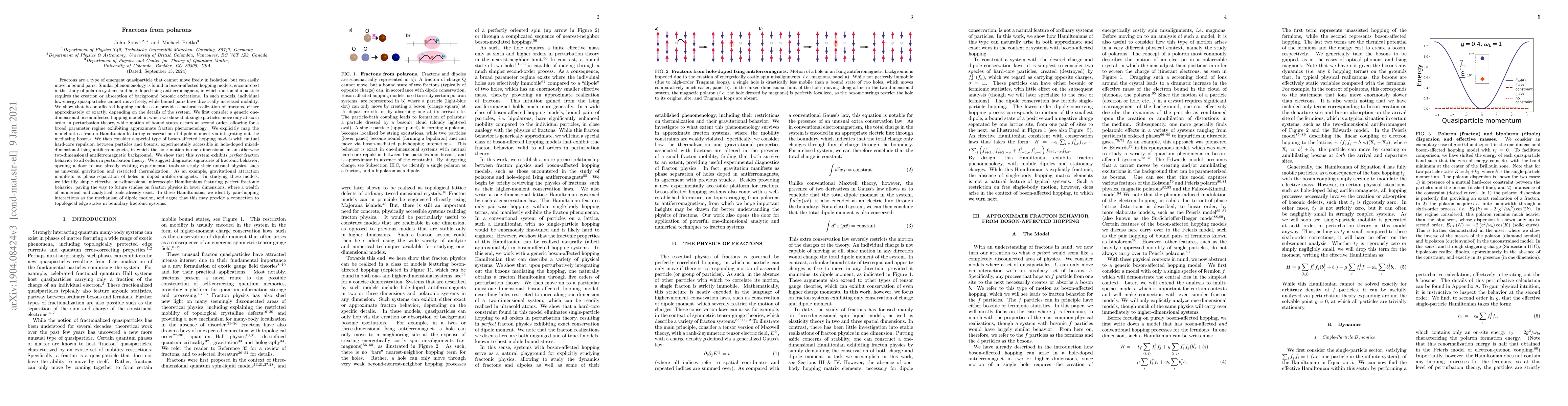 Fractons are a type of emergent quasiparticle which cannot move freely in isolation, but can easily move in bound pairs. Similar phenomenology is found in boson-affected hopping models, encountered in the study of polaron systems and hole-doped Ising antiferromagnets, in which motion of a particle requires the creation or absorption of bosonic excitations. We show that boson-affected hopping models can provide a natural realization of fractons, either approximately or exactly, depending on the details of the system. We first consider a generic one-dimensional boson-affected hopping model, in which we show that single particles move only at sixth order in perturbation theory, while motion of bound states occurs at second order, allowing for a broad parameter regime exhibiting approximate fracton phenomenology. We explicitly map the model onto a fracton Hamiltonian featuring conservation of dipole moment via integrating out the mediating bosons. We then consider a special type of boson-affected hopping models with mutual hard-core repulsion between particles and bosons, accessible in hole-doped mixed-dimensional Ising antiferromagnets, in which the hole motion is one dimensional in an otherwise two-dimensional antiferromagnetic background. We show that this system, which is within the current reach of ultracold-atom experiments, exhibits perfect fracton behavior to all orders in perturbation theory, thereby enabling the experimental study of dipole-conserving field theories. We further discuss diagnostic signatures of fractonic behavior in these systems. In studying these models, we also identify simple effective one-dimensional microscopic Hamiltonians featuring perfect fractonic behavior, paving the way to future studies on fracton physics in lower dimensions.