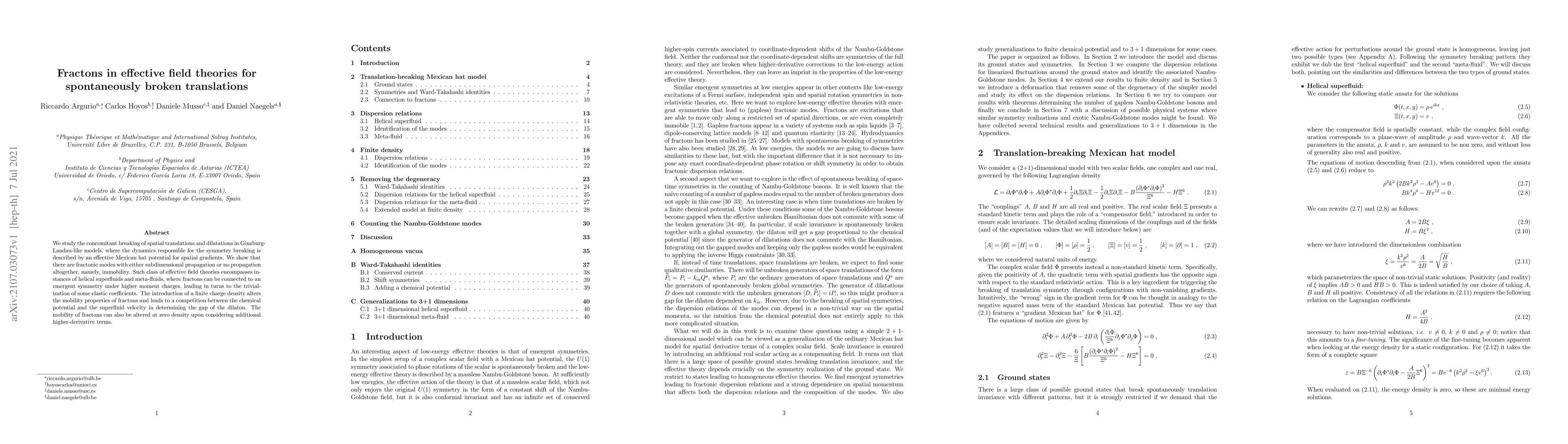 We study the concomitant breaking of spatial translations and dilatations in Ginzburg-Landau-like models, where the dynamics responsible for the symmetry breaking is described by an effective Mexican hat potential for spatial gradients. We show that there are fractonic modes with either subdimensional propagation or no propagation altogether, namely, immobility. Such class of effective field theories encompasses instances of helical superfluids and meta-fluids, where fractons can be connected to an emergent symmetry under higher moment charges, leading in turns to the trivialization of some elastic coefficients. The introduction of a finite charge density alters the mobility properties of fractons and leads to a competition between the chemical potential and the superfluid velocity in determining the gap of the dilaton. The mobility of fractons can also be altered at zero density upon considering additional higher-derivative terms.