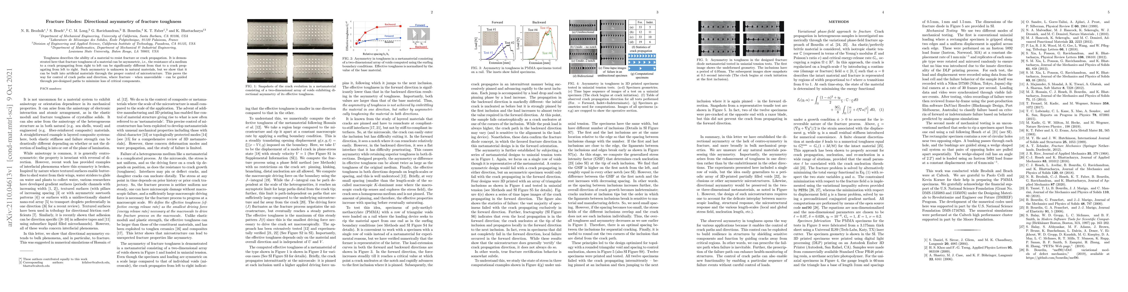 The paper explores the directional asymmetry in fracture toughness, demonstrating that artificial materials can be engineered to have different resistance to crack propagation in opposite directions. This control over crack paths can be utilized to minimize damage in critical components by guiding unavoidable fractures through pre-designed routes.