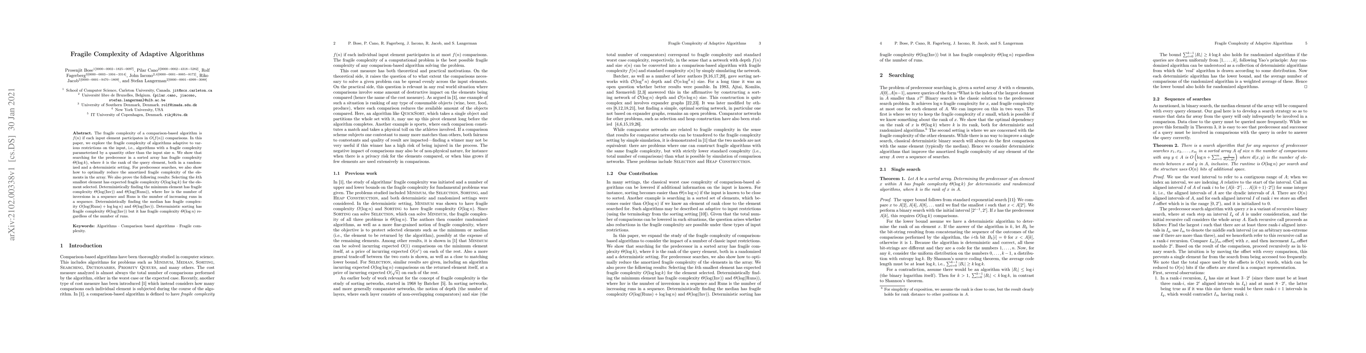 Researchers explore the fragility of algorithms under various restrictions, finding that certain operations like predecessor search, selecting the k-th smallest element, and sorting have complex time complexities influenced by additional parameters.