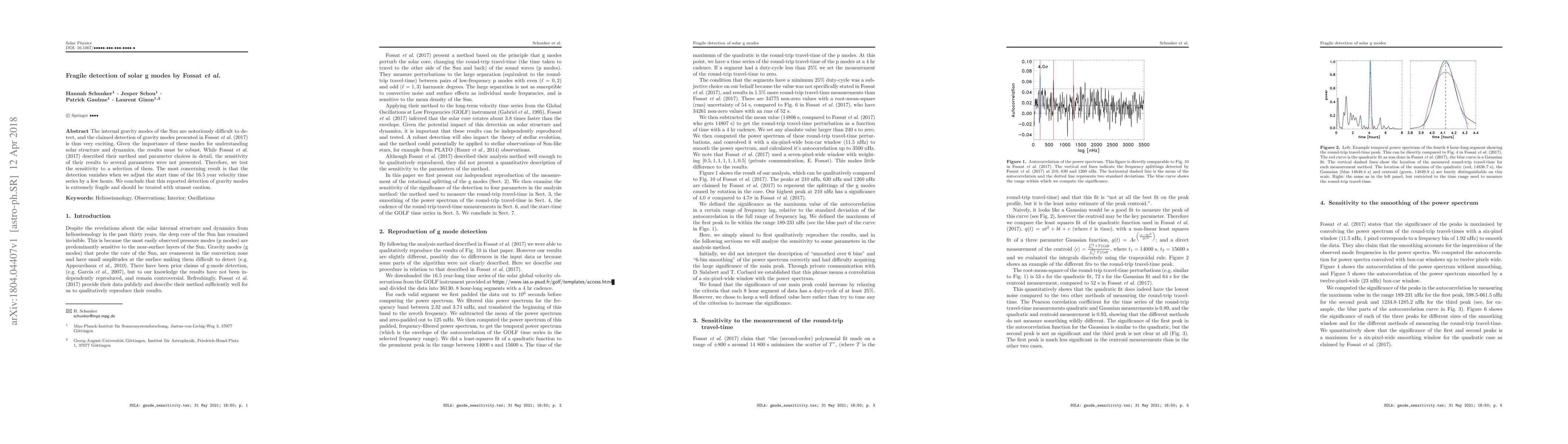 The internal gravity modes of the Sun are notoriously difficult to detect, and the claimed detection of gravity modes presented in Fossat et al. 2017 is thus very exciting. Given the importance of these modes for understanding solar structure and dynamics, the results must be robust. While Fossat et al. 2017 described their method and parameter choices in detail, the sensitivity of their results to several parameters were not presented. Therefore, we test the sensitivity to a selection of them. The most concerning result is that the detection vanishes when we adjust the start time of the 16.5 year velocity time series by a few hours. We conclude that this reported detection of gravity modes is extremely fragile and should be treated with utmost caution.